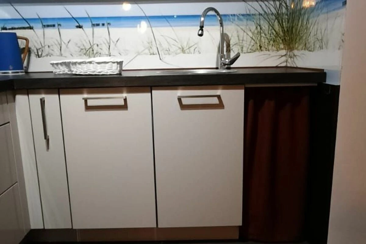 Ceranfeld, Toaster, Kaffeemaschine, Wasserkocher, Kühlschrank mit Gefrierfach, Mikrowelle, Geschirrspüler