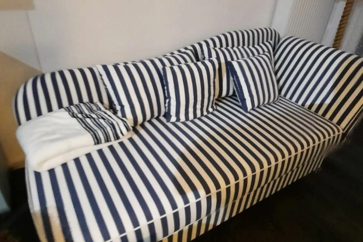 gemütliche Couch mit Schlaffunktion, Flachbild-TV, Sideboard,
