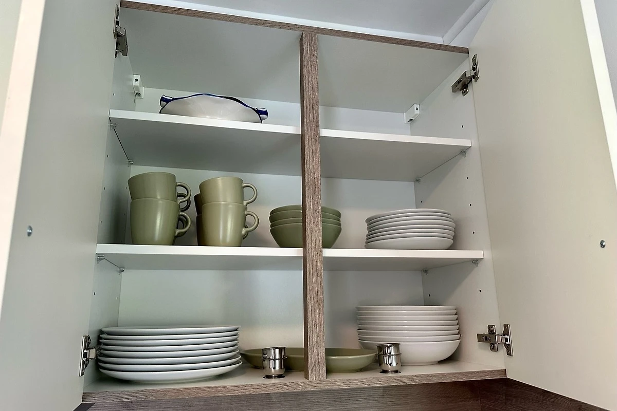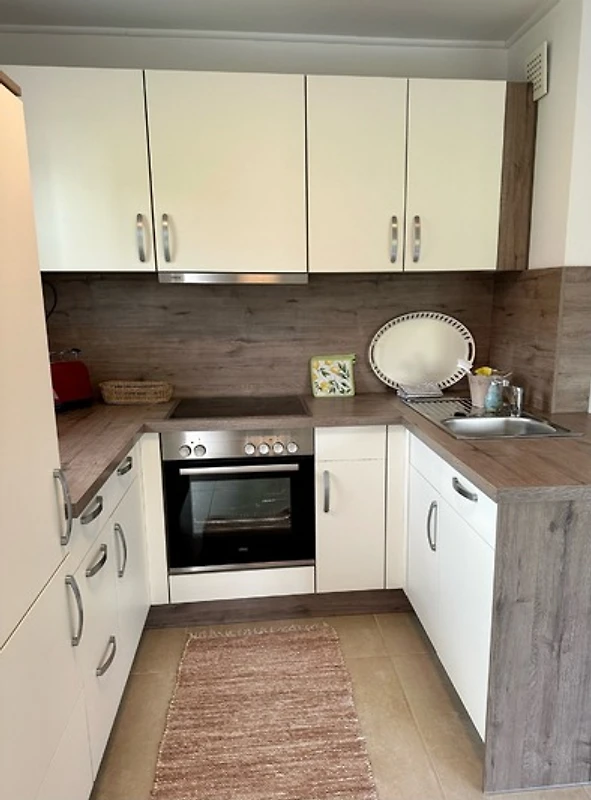 Die hübsche kleine Küche ist voll ausgestattet mit Backofen, Kaffeemaschine, Toaster, Spülmaschine etc. - Geschirr und Kochutensilien sind vorhanden.