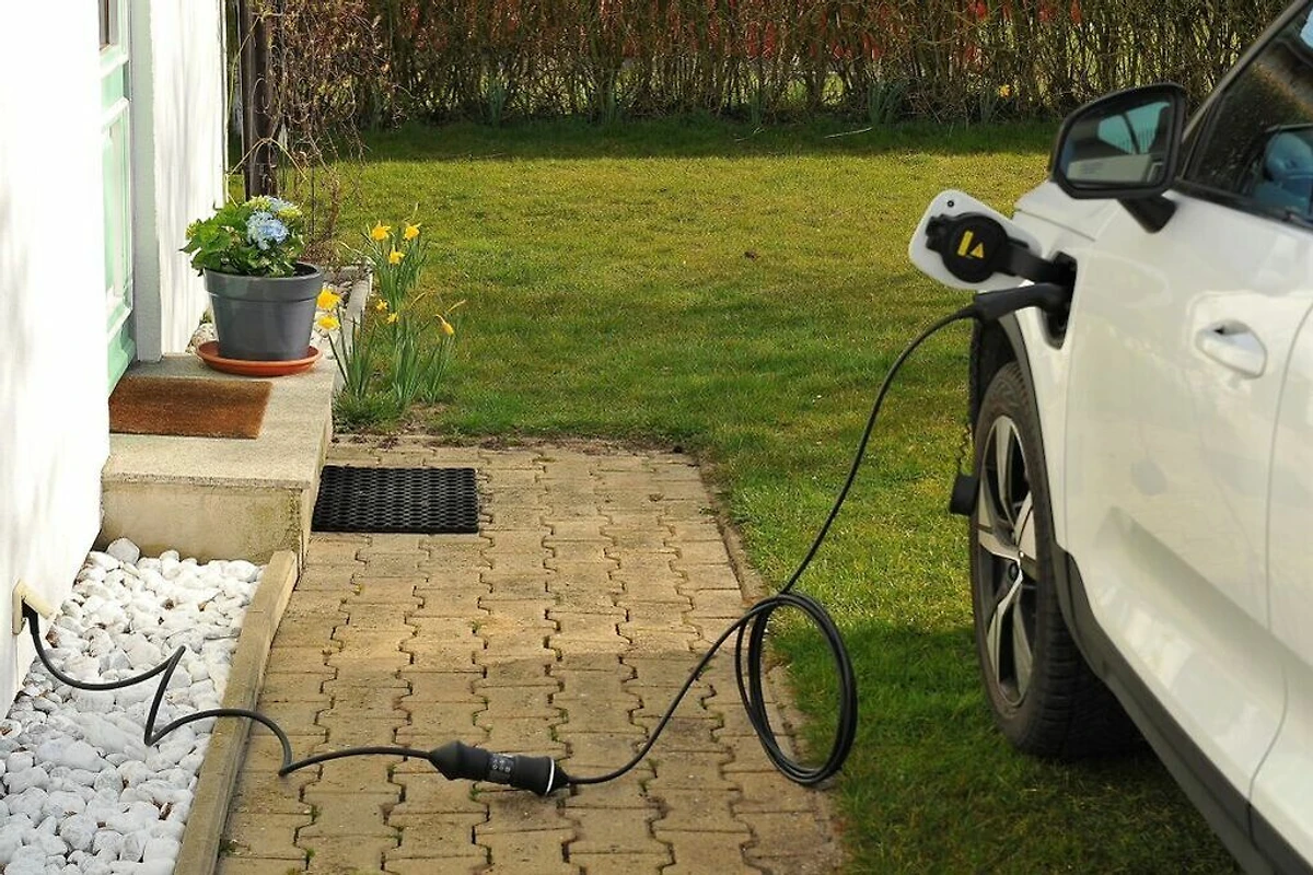 Zwei eingefriedete Pkw-Stellplätze direkt am Ferienhaus, zwei E-Lademöglichkeiten (400 V und 230 V)