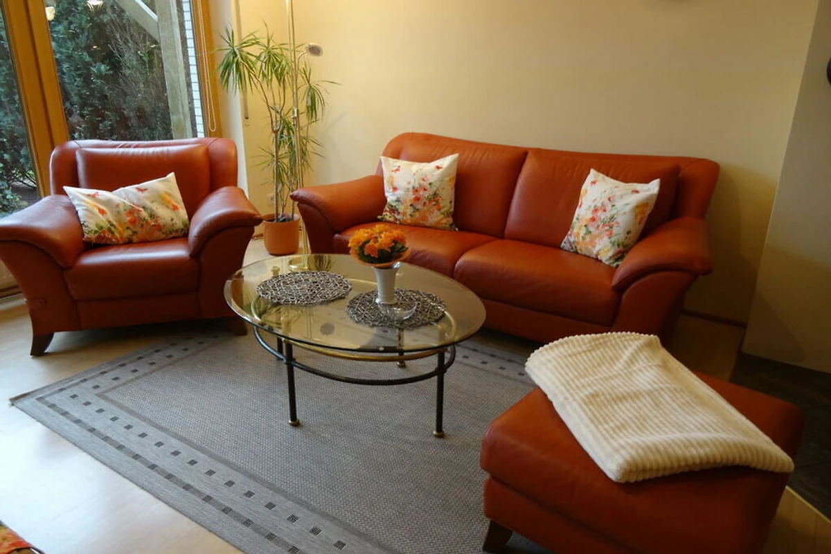 Die teils überdachte Südterrasse kann man bei jedem Wetter nutzen. Es stehen 6 Stühle, ein Tisch, 2 Liegen und ein Grill zur Verfügung. Der Garten ist komplett mit einer großen 3 m hohen Hecke umzäunt, so dass auch die Kinder bedenkenlos spielen können. Zum Grundstück gehören ebenfalls ein abschließbarer Fahrradschuppen und ein eigener Stellplatz vor dem Haus. Kostenfreies Internet ist bei uns selbstverständlich.