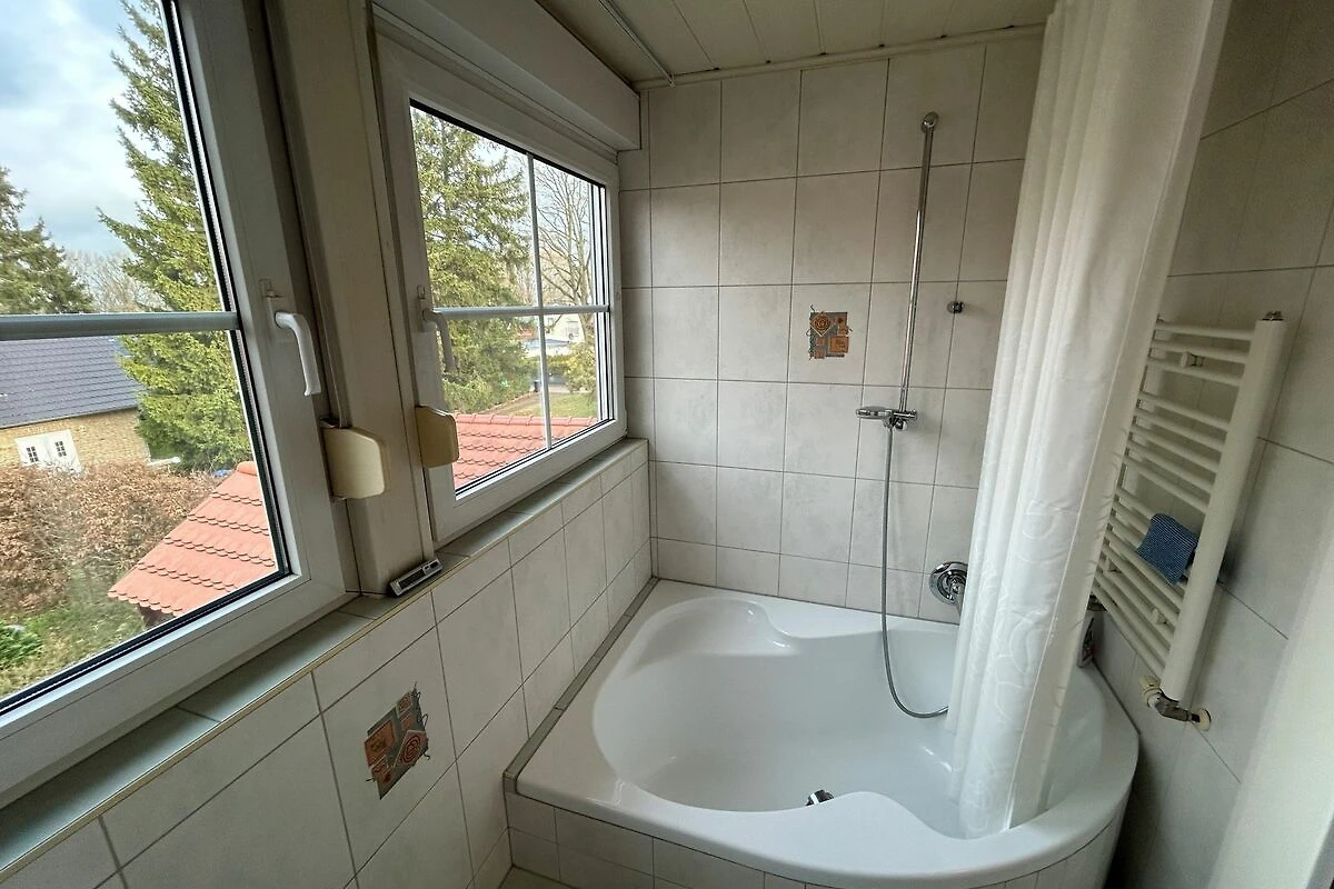 Dieses geräumige Ferienhaus erstreckt sich über 105 m² und bietet Ihnen eine komfortable Unterkunft mit durchdachter Ausstattung. m Erdgeschoss erwartet Sie ein grosszügiges Wohnzimmer, das zum Entspannen und geselligen Beisammensein einlädt. Die offene Küche mit Essbereich bietet alle Annehmlichkeiten, um kulinarische Köstlichkeiten zuzubereiten und gemeinsam zu geniessen. Das Ferienhaus verfügt über insgesamt drei Schlafzimmer. Das Hauptschlafzimmer ist mit einem Doppelbett ausgestattet, während die anderen beiden Schlafzimmer je ein Einzelbett zum Ausziehen bieten. Für Ihr Wohlbefinden stehen zwei Badezimmer zur Verfügung, eines mit Dusche und das andere mit einer entspannenden Badewanne.
