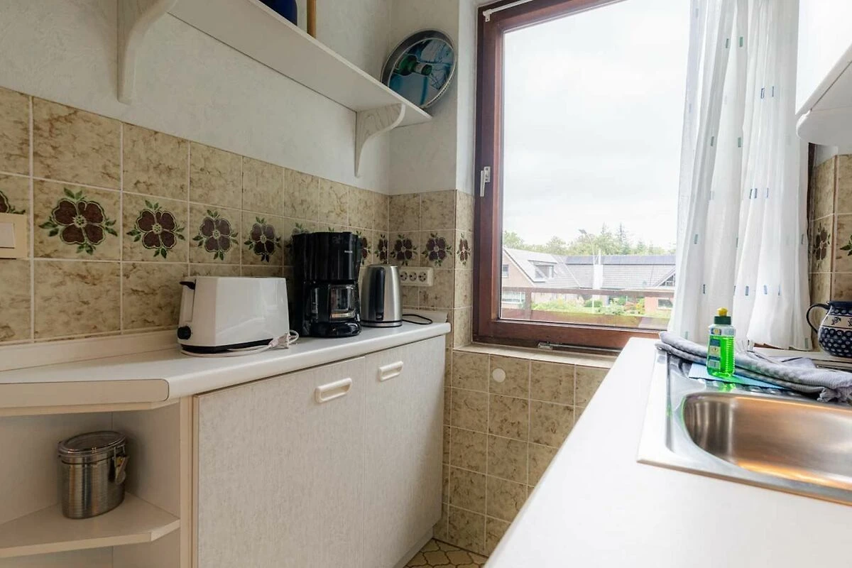 Gemütliche, einfache 2-Zimmer-Ferienwohnung Steuerbordkajüte im Haus Seewolf mit ca. 41 m² auf 1 Ebene (OG) für bis zu 3 Personen. In ruhiger Lage nahe der Einkaufsstrasse im Ortsteil Dorf in St. Peter-Ording. Alle Geschäfte, Restaurants und Bäckereien sind fussläufig bequem erreichbar. Zwei Hunde sind nach Anmeldung herzlich willkommen.