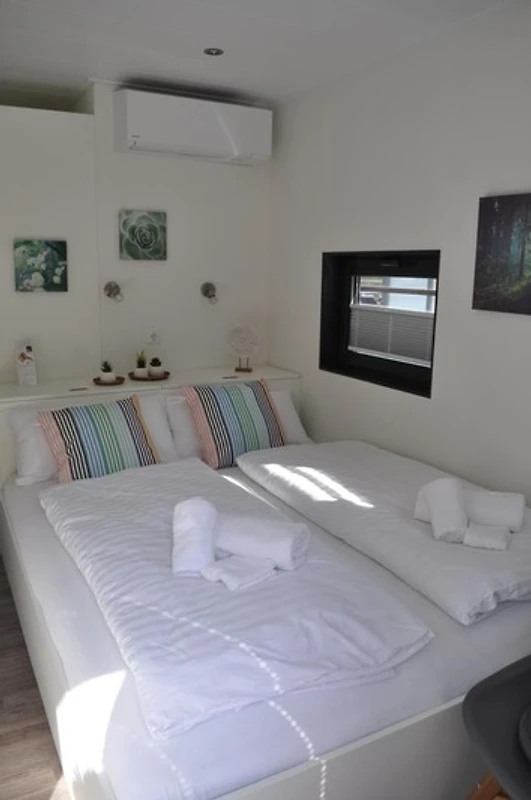 Der öffentliche Parkplatz ist für Sie frei zugänglich. Zum Be- und Entladen können Sie in die Nähe der Steganlage fahren. Sie erhalten Bettwäsche und Handtücher inklusive.