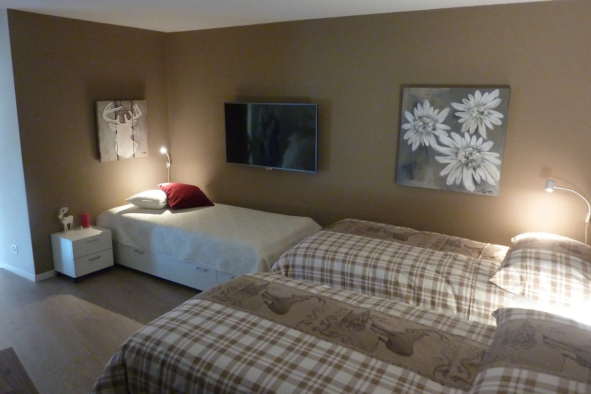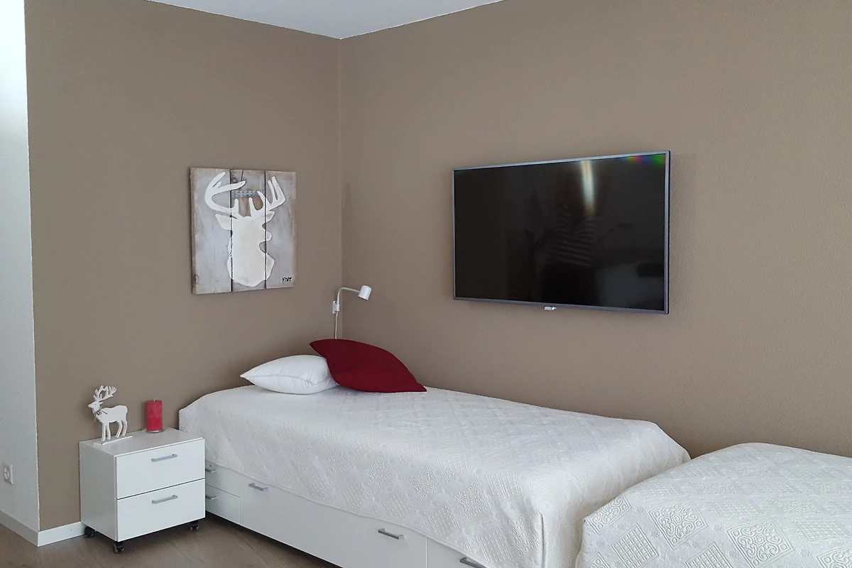 Es besteht die Möglichkeit, zusätzlich eine nebenan gelegene 2.5-Zimmerwohnung mit 4 Betten, zu mieten. Abtrennung durch eine schalldichte Verbindungstüre.