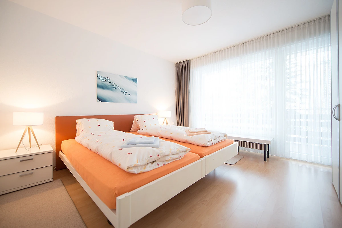 1 Schlafzimmer (½ Stock tiefer) mit 2 Betten (90x200).