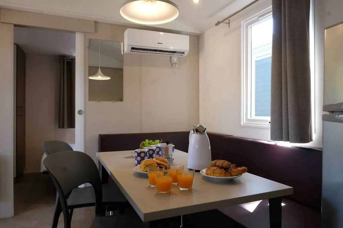 Mobilehome, 1 Etage, 3 Zimmer (davon 2 Schlafzimmer), 22 qm, insgesamt 5 Betten (davon 1 Zusatzbett).