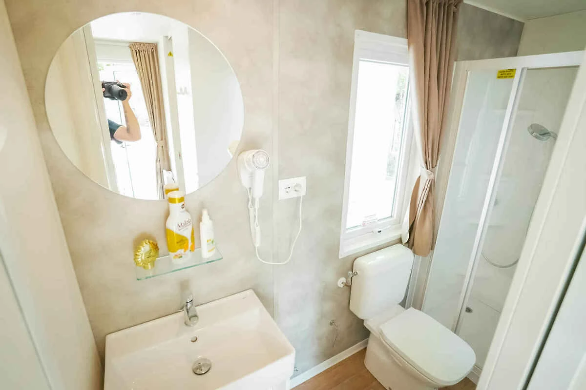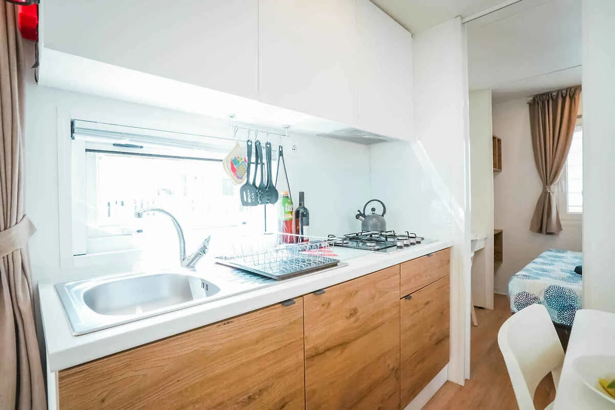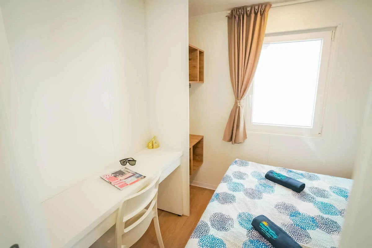 Mobilehome, 1 Etage, 3 Zimmer (davon 2 Schlafzimmer), 24 qm, insgesamt 5 Betten (davon 1 Zusatzbett).