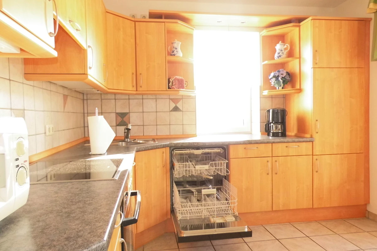 Die gut ausgestattete Küche besitzt unter anderem einen Toaster, eine Kaffeemaschine sowie eine Geschirrspülmaschine für mehr Komfort.
