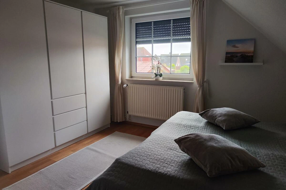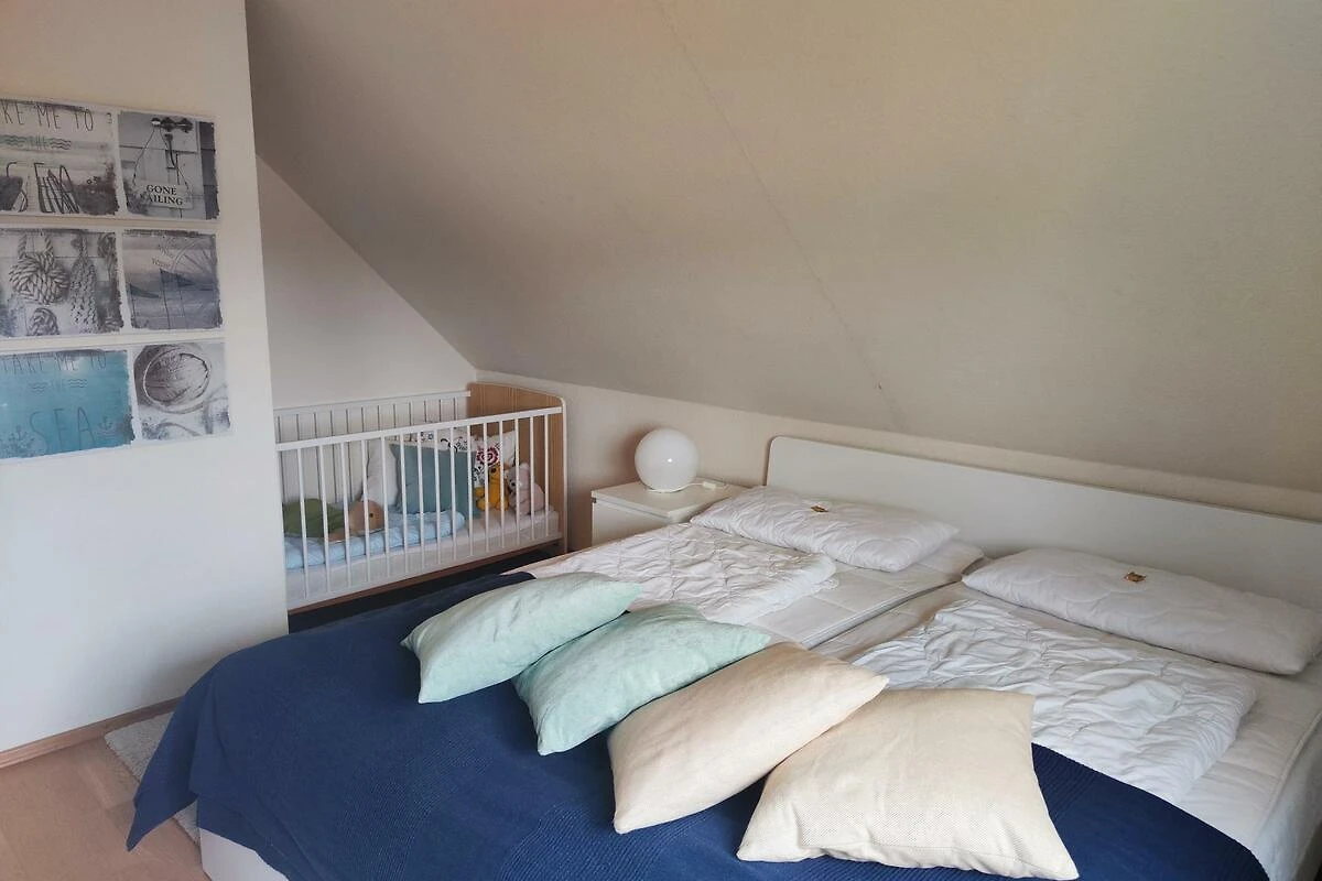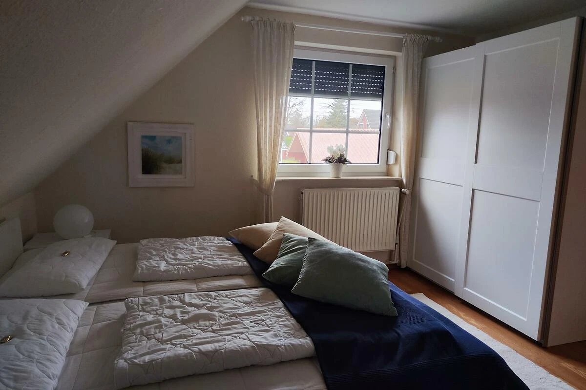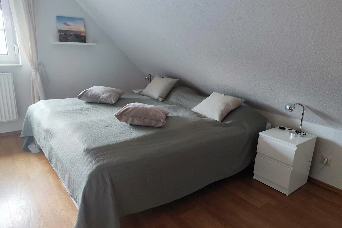 Die liebevoll ausgestattete Doppelhaushälfte bietet Ihnen einen tollen Wohnkomfort für entspannte Urlaubstage. Die obere Etage ist allein den beiden grosszügigen Schlafzimmern vorbehalten. Auf der unteren Wohnebene wurde durch die offen gehaltene Küche und der ansprechenden Wohnzimmereinrichtung ein gemütlicher Wohnraum geschaffen, der zum Verweilen einlädt. Vom Wohnzimmer aus haben Sie direkten Zugang zu der schönen Terrasse mit Gartenmöbeln, Sonnenmarkise und Gartengrill. Ausserdem ist ein Gartenhäuschen vorhanden, in dem Sie Ihre Fahrräder einschliessen können. Für E-Bikes ist im Terrassenbereich sogar eine Steckdose zum Laden der Räder vorhanden. Der Gartenbereich ist eingezäunt, so dass Sie Ihren Vierbeiner auch entspannt frei laufen lassen können.
