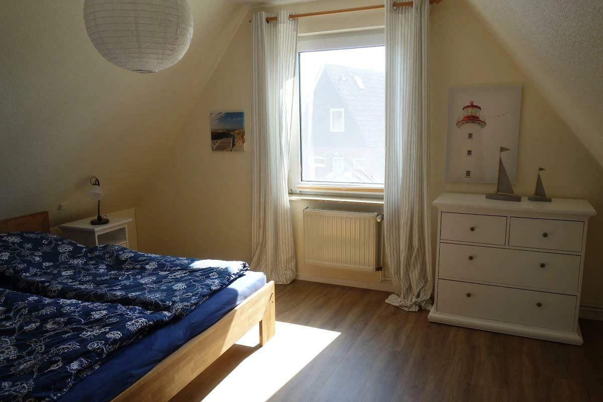 Ganz gemütlich unterm Dach liegen das grosszügige Schlafzimmer mit einem Doppelbett und das zweite Schlafzimmer mit zwei Einzelbetten.