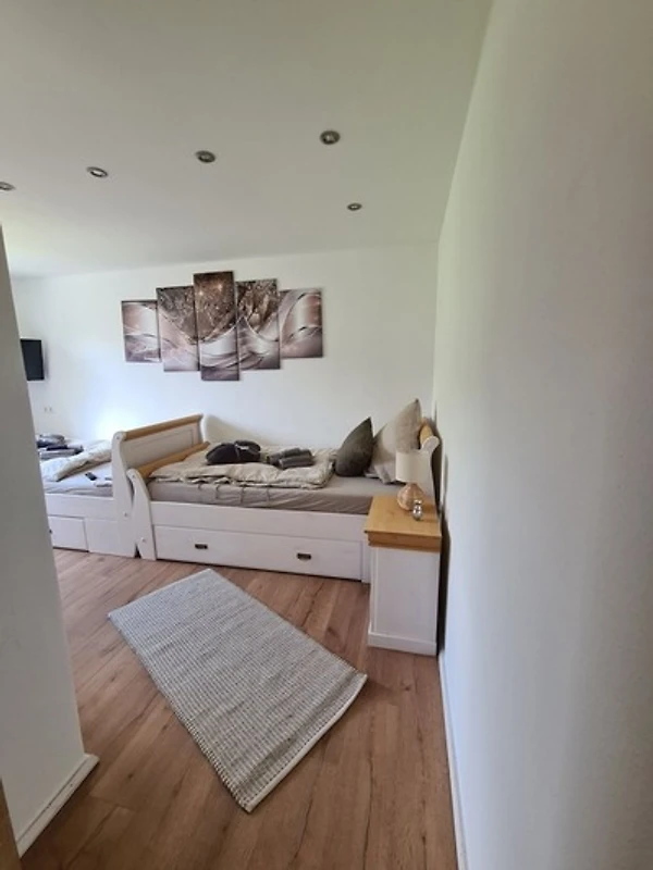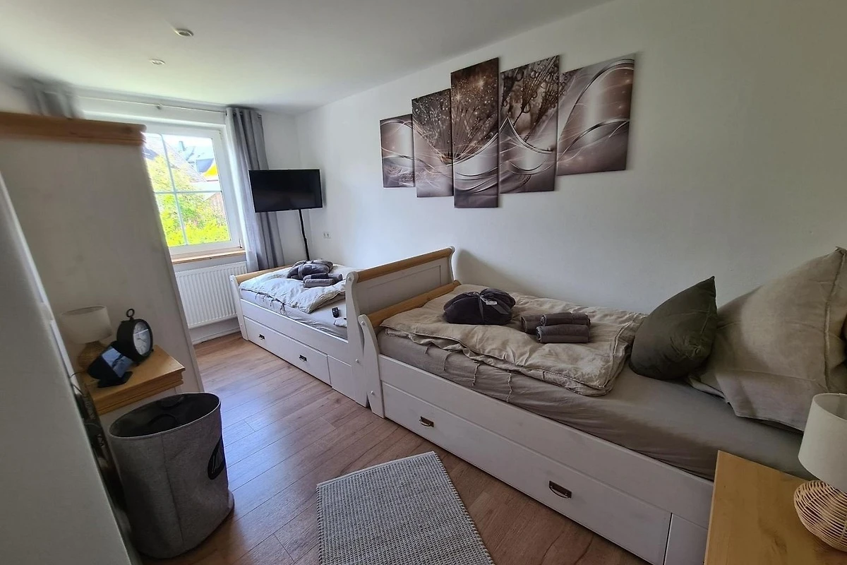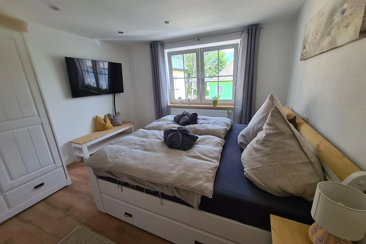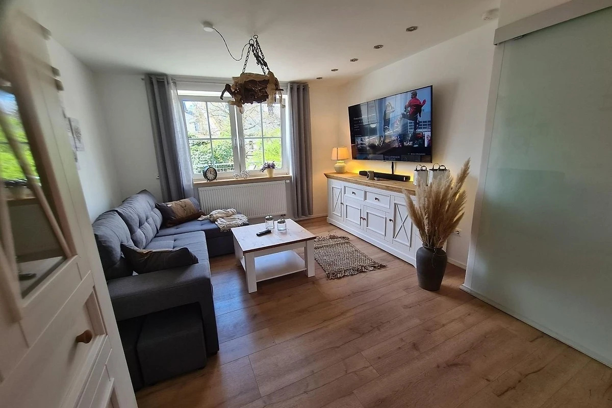 Waschmaschine im EG für weniger Gepäck hochwertige Bettwäsche mit Topper SmartTV mit kostenlosen Channels Spielesammlung, Bücher kostenlose Fahrräder u. v. m..
