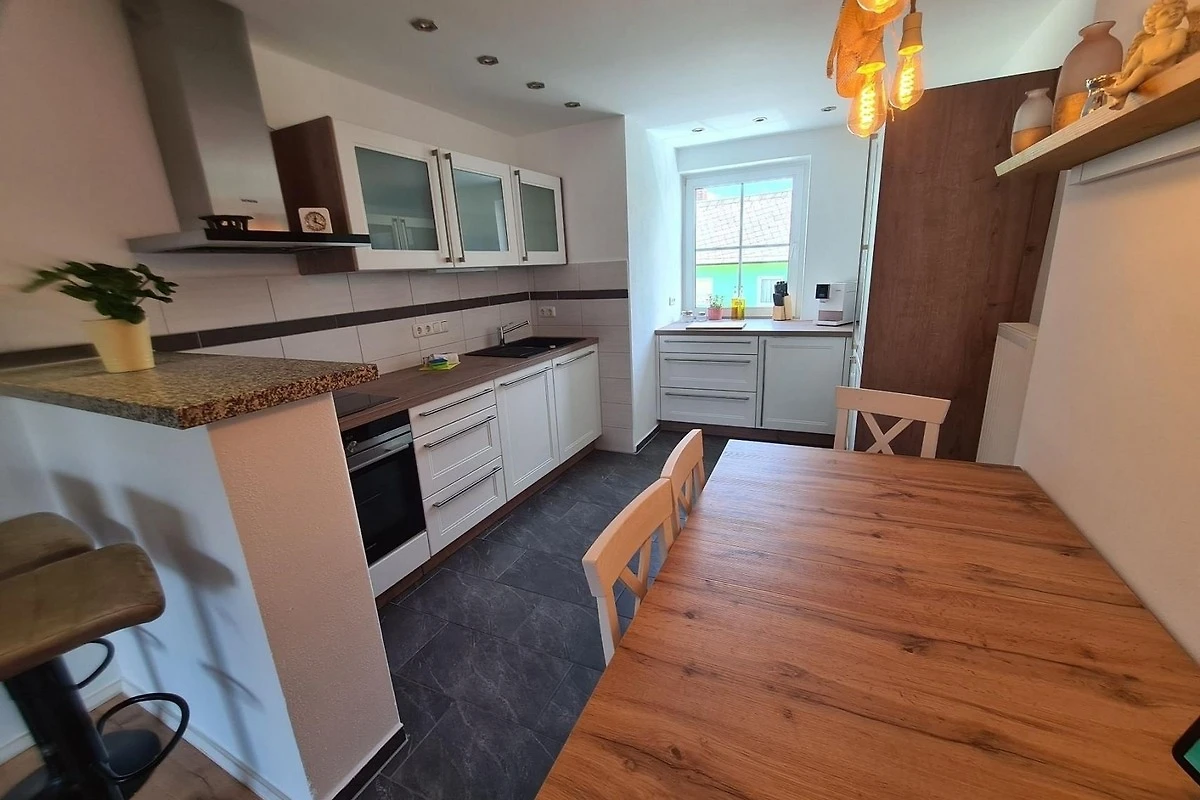 Unser Motto: "Urlaub wie bei Freunden". Die Wohnung verfügt über eine voll ausgestattete Küche inkl. Geschirrspüler. Geniessen Sie ein warmes Bad mit leckerem Kaffee einer Privatrösterei oder lassen Sie einen Wandertag mit einem kühlen Bier aus dem Getränkekühlschrank im Garten mit Grill und Pizzastein ausklingen.
