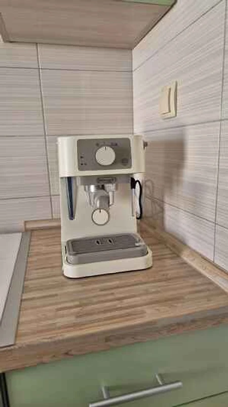Wohnzimmer (Durchgangszimmer) mit Sitzecke, TV und Essecke. Schlafzimmer (12 qm) mit 1 Doppelbett. Kochecke im Wohnzimmer mit Gasherd, Backofen, Geschirrspüler, Kühlschrank, Kaffeemaschine und elektrischem Wasserkocher. Bad mit Dusche, WC und Föhn.