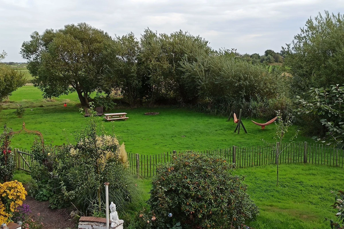 Unser Landhaus hat einen herrlichen Garten, der Sie einlädt, zu entspannen und in Ruhe den weiten Blick über die schöne nordfriesische Landschaft zu geniessen.