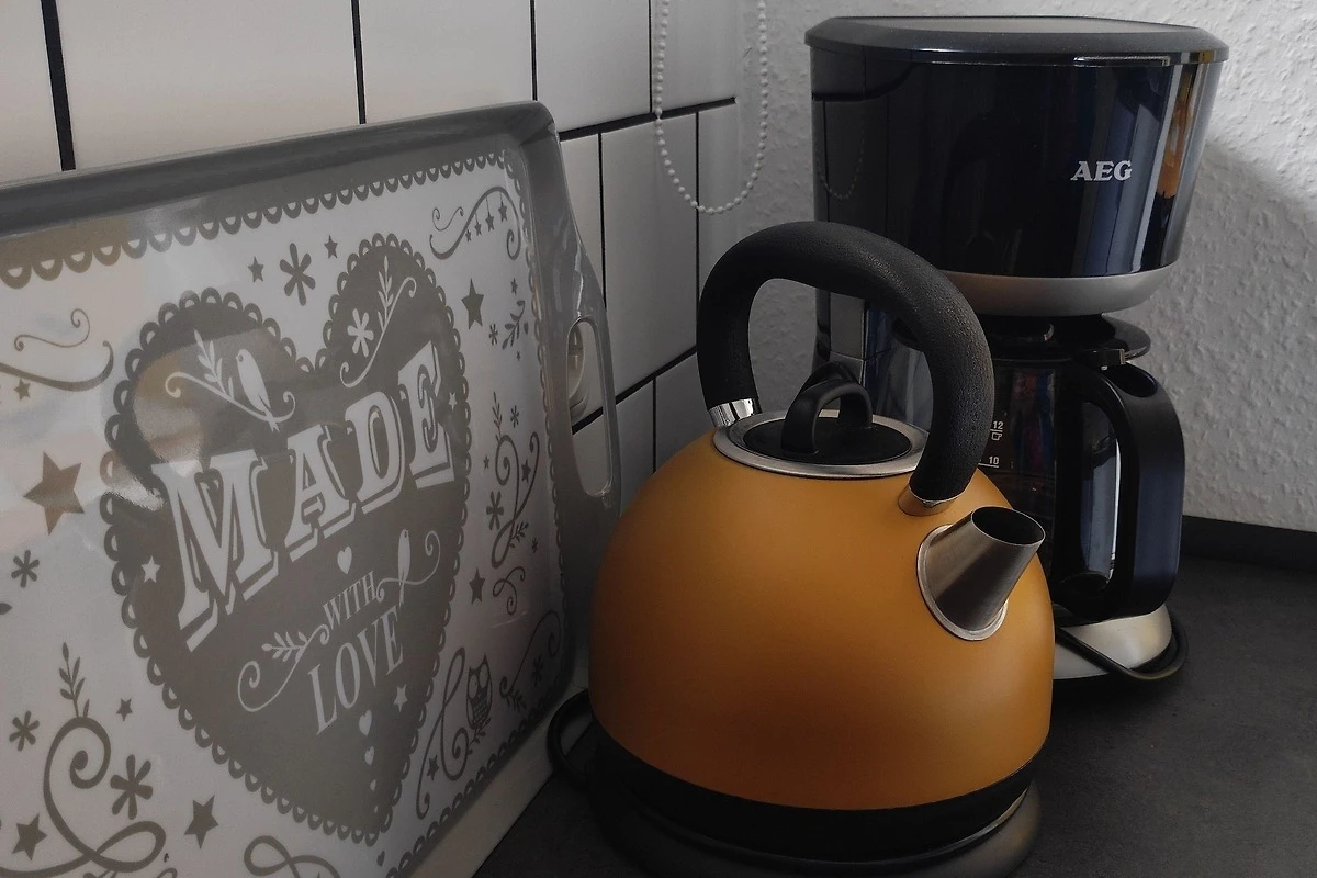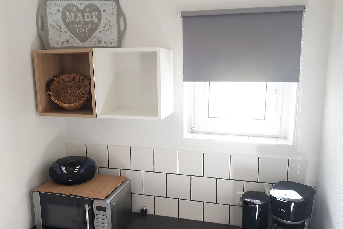 Die Küche ist mit einem 2-Platten-Herd, Kühlschrank mit Gefrierfach, Mikrowelle, Kaffeemaschine, Wasserkocher und ausreichend Geschirr ausgestattet.