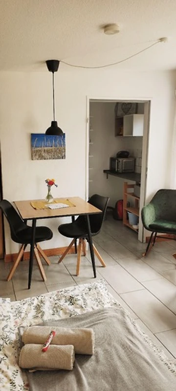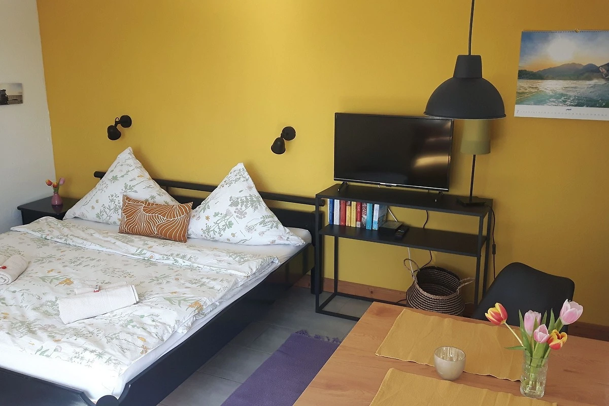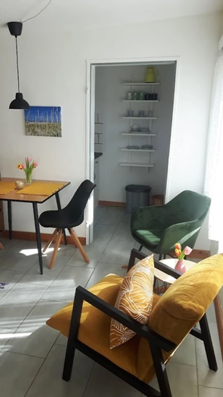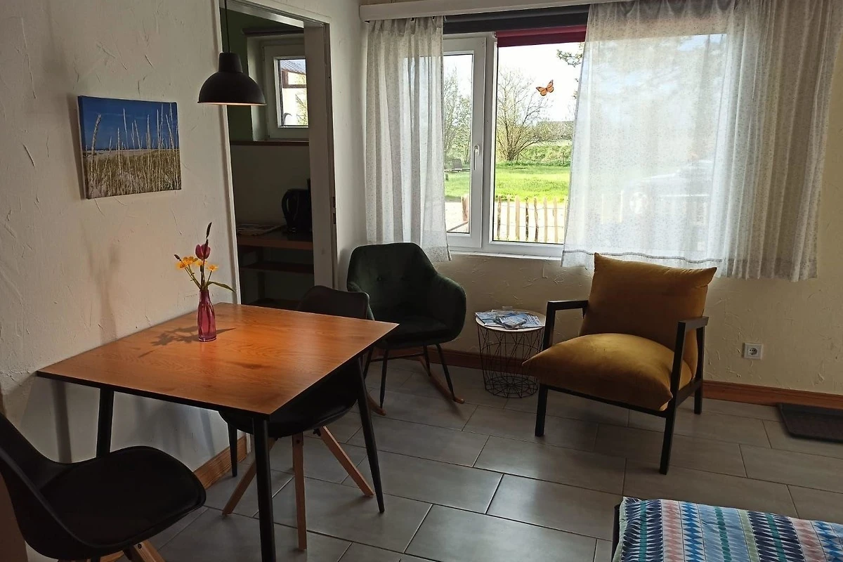 Sehr beliebt bei jungen Urlaubern ist die Wohnung Surfspot, die praktisch und individuell eingerichtet ist. Das Duschbad und die Küche gehen vom Wohn- Schlafzimmer ab.