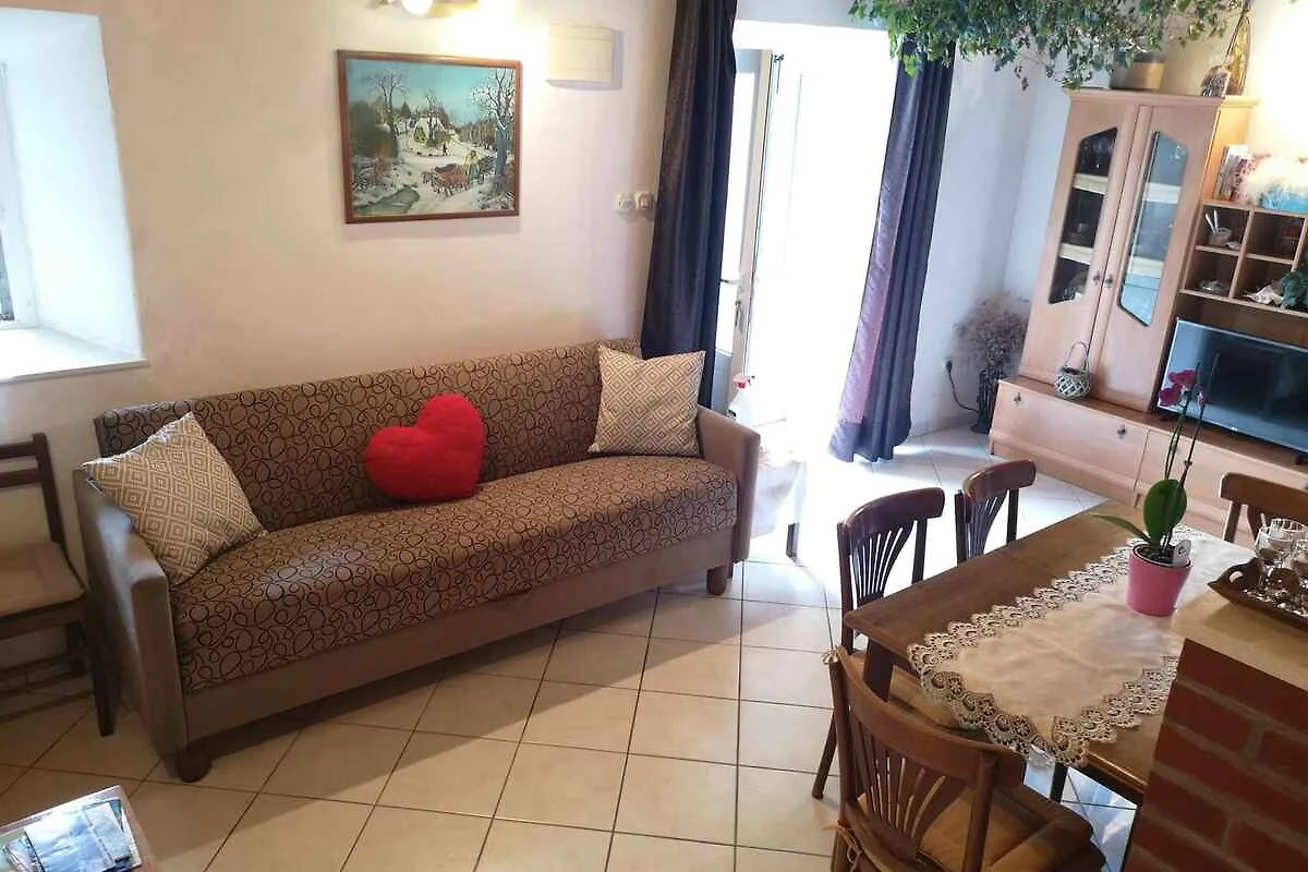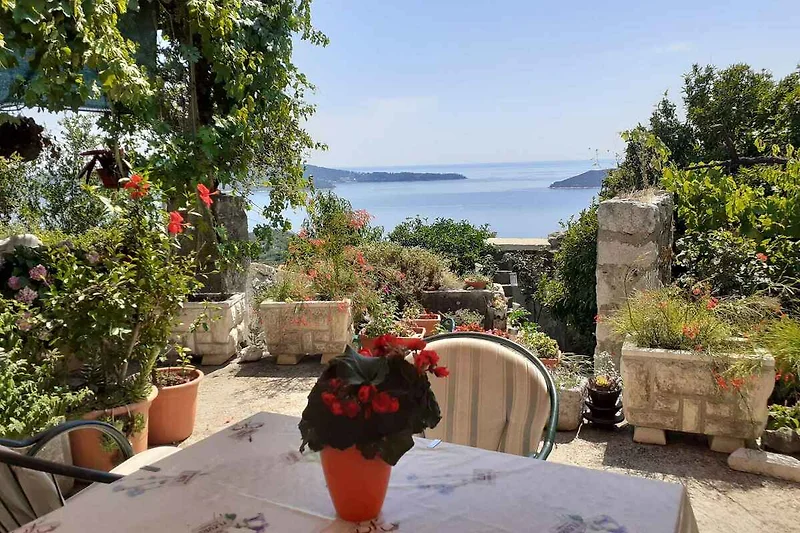 Brsečine. Die Ferienwohnung befindet sich auf einem Gartengrundstück mit Blumen, Sträuchern und Bäumen. Parkplatz : 50 - 150 m vom Haus entfernt (Garage).