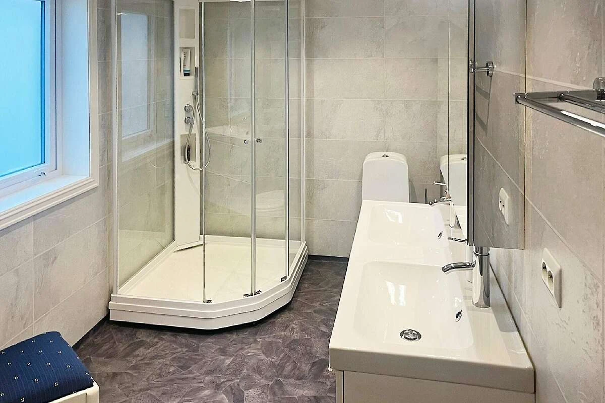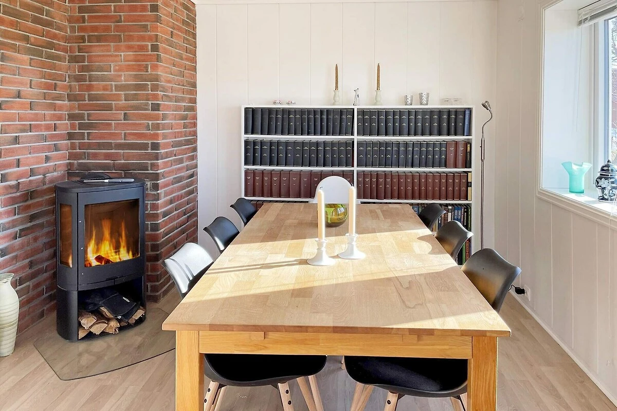 , offene Küche(Kochherd(elektrisch), Dunstabzugshaube, Kaffeemaschine(Filter), Mikrowelle, Spülmaschine, Kühlschrank, Tiefkühlschrank(200-249L), Trockner, Waschmaschine, Hochstuhl), Wohn-/Schlafzimmer(34 m2)(TV(Deutsch Fernsehsender, norwegische Fernsehsender)), Schlafzimmer(Doppelbett), Schlafzimmer(Doppelbett), Schlafzimmer(Doppelbett), Schlafzimmer(Einzelbett), Schlafzimmer(2x Einzelbett), Badezimmer(Waschbecken, Toilette), Badezimmer(Fußbodenheizung)(Waschbecken, Dusche), Heizung(elektrisch), Terrasse(60 m2), Garten, Gartenmöbel, Grill, Parkplatz, Luft-Luft-Wärmepumpe