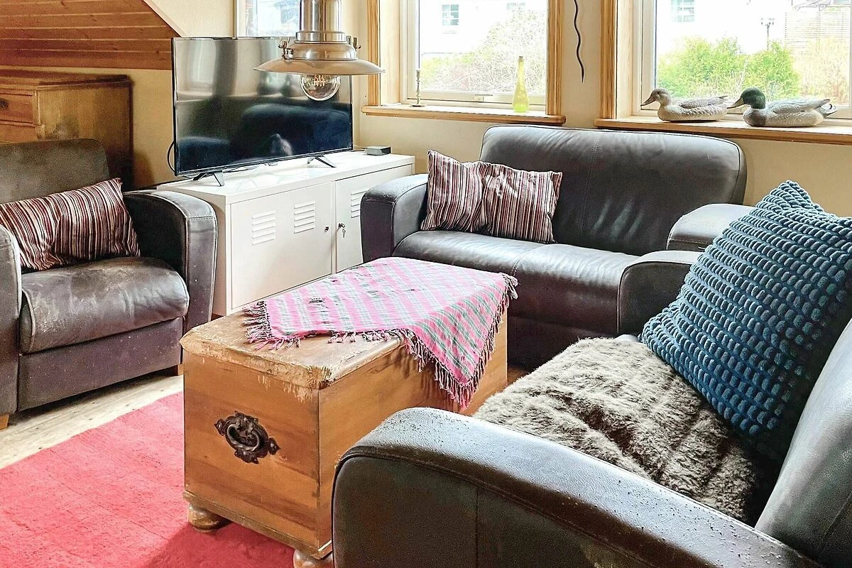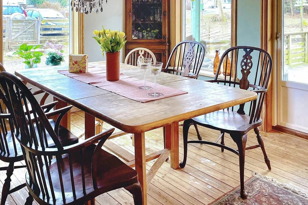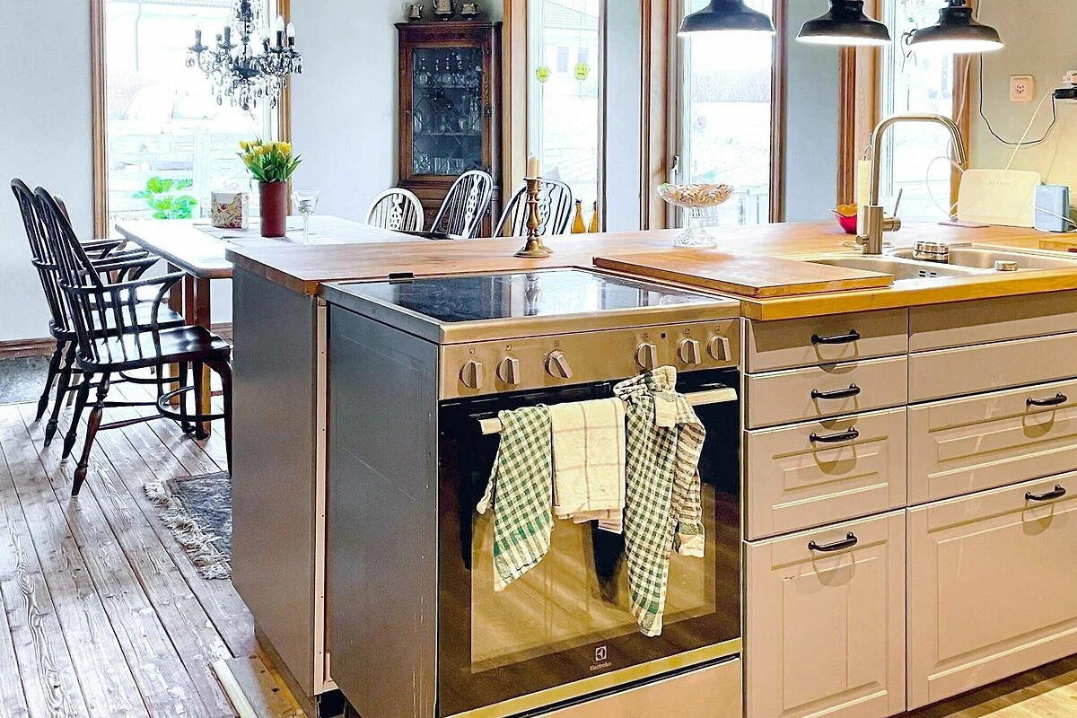 , Wohnzimmer(TV(schwedische Fernsehsender)), Küche(Kaminofen, Kochherd(elektrisch), Kaffeemaschine, Backofen, Mikrowelle, Spülmaschine, Kühl-/Gefrierkombination), Wohn-/Schlafzimmer(TV(schwedische Fernsehsender), Netflix), Schlafzimmer(Doppelbett), Schlafzimmer(Doppelbett), Schlafzimmer(Doppelbett), Badezimmer(Badewanne, Waschbecken, Dusche, Toilette), Badezimmer(Waschbecken, Dusche, Toilette), Terrasse, Gartenmöbel, Parkplatz