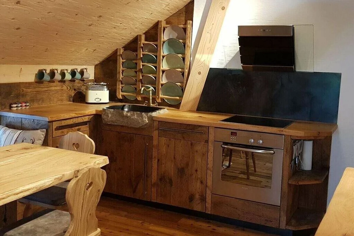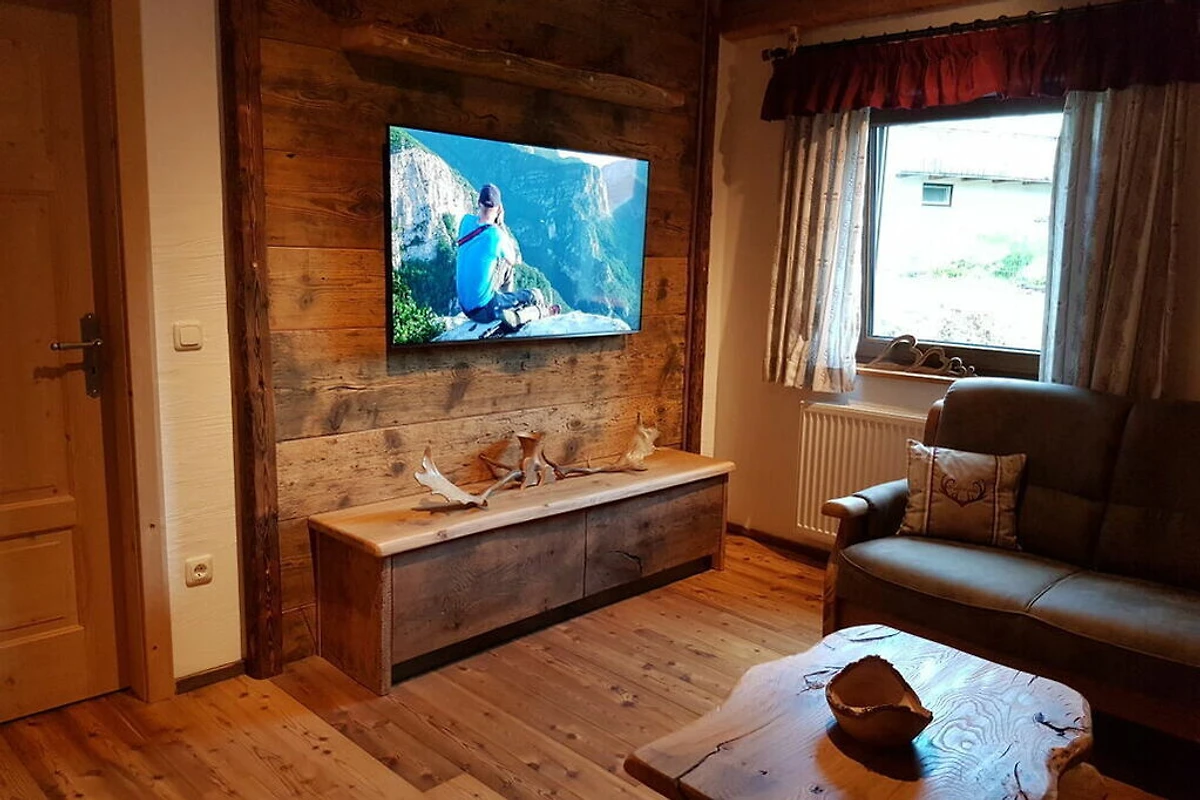Das verarbeitete Massivholz macht diese Wohnung warm und gemütlich. Es erwartet Sie ein modernes Badezimmer mit Dusche und WC, ein Zirben-Schlafzimmer, ein Eichen-Schlafzimmer, eine vollausgestattete Küche aus Altholz mit Essbereich und eine großzügige Couch mit Smart-TV.