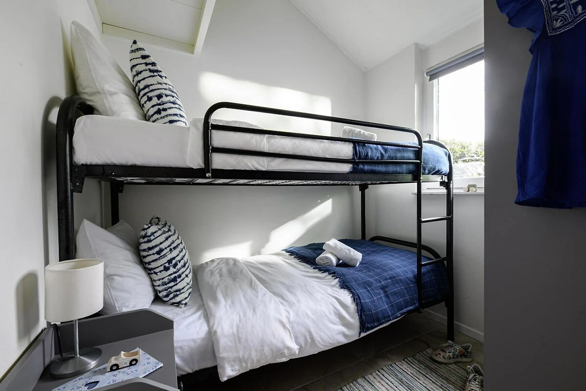 Dieser moderne Bungalow versprüht mit seiner L-förmigen Terrasse mediterranes Flair – perfekt für entspannte Morgenstunden oder den Blick auf den Sonnenuntergang. Wärmen Sie sich am Kamin im gemütlichen Wohnzimmer mit Fußbodenheizung auf und genießen Sie Ihre Mahlzeiten in der offenen Küche mit Mikrowelle. Der Bungalow bietet bequem Platz für sechs Personen und verfügt über ein Schlafzimmer mit Doppelbett, ein Zimmer mit Etagenbetten und ein Doppelschlafsofa. Das Badezimmer verfügt über eine Badewanne mit Dusche zum Entspannen nach einem Tag im Freien. Ein privater, reservierter Liegeplatz im Yachthafen des Parks bietet Bootsliebhabern direkten Zugang zum Wasser.
