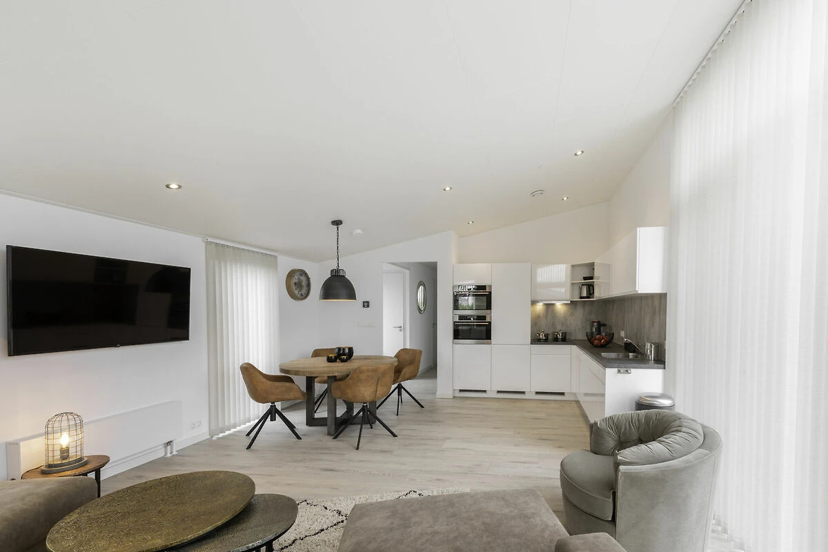 Am Rande eines ruhigen Ferienparks in Wemeldinge gelegen, bietet dieses stilvolle 2-Zimmer-Haus die perfekte Balance aus Komfort und Ruhe. Große Fenster durchfluten den Wohnraum mit Tageslicht und die geschmackvolle Einrichtung sorgen für sofortiges Wohlfühlen. Die offene Küche ist komplett ausgestattet mit Geschirrspüler, Backofen, Mikrowelle und Kaffeemaschine – ideal für entspannte Hausmannskost. Ob Sie einen gemütlichen Morgen genießen oder nach einem Strandtag ausklingen lassen – dieses Haus lädt zum Entspannen ein.