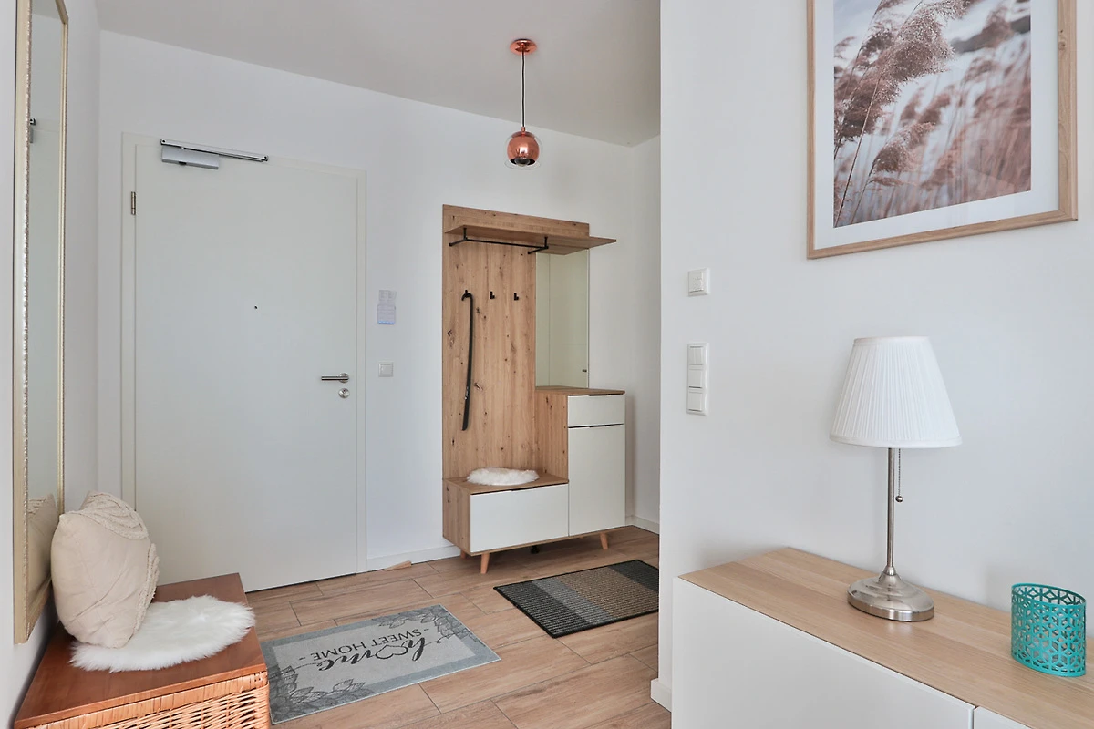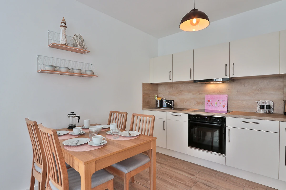 Diese sehr schöne Ferienwohnung "Meery" sucht Ihresgleichen. Sie ist modern und komfortabel eingerichtet, hat 1 Wohnzimmer mit offener Küche und ein Esstisch für 4 Personen ist natürlich auch vorhanden. Die Küche verfügt über alle modernen Geräte u.a. auch über einen Kaffeeautomaten mit ganzer Bohne.