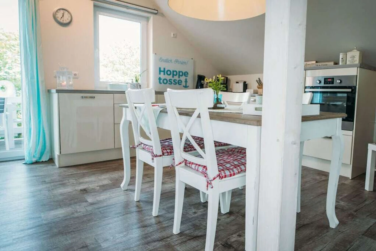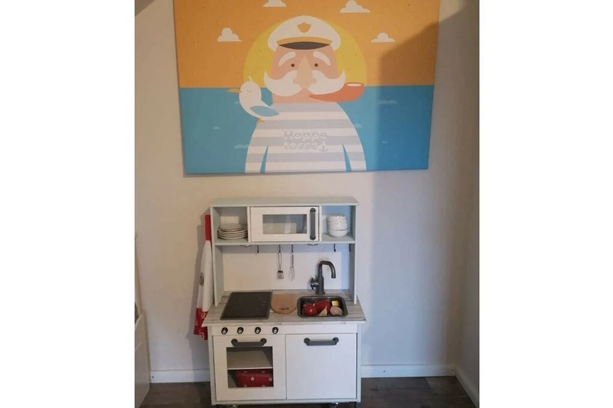 Die familienfreundliche Ferienwohnung bietet ausreichend Platz für 4 Personen und verfügt über 1 Schlafzimmer, 1 Kinderzimmer, 1 Wohnzimmer mit offener Küche und 1 Badezimmer mit Sauna sowie einen Balkon. Parkplatz direkt an der Ferienwohnung. Die Hoppetosse ist mit allem ausgestattet, was man zum Erholen braucht. Von Bollerwagen über Bücher, Spielzeug, Sandspielzeug, usw. Auch für die ganz kleinen ist alles da: Babyreisebett, Wickeltisch, Hochstuhl, Treppenschutzrollo, Rausfallschutz fürs Kinderbett, Hocker im Bad, Kinder WC Sitz, ...