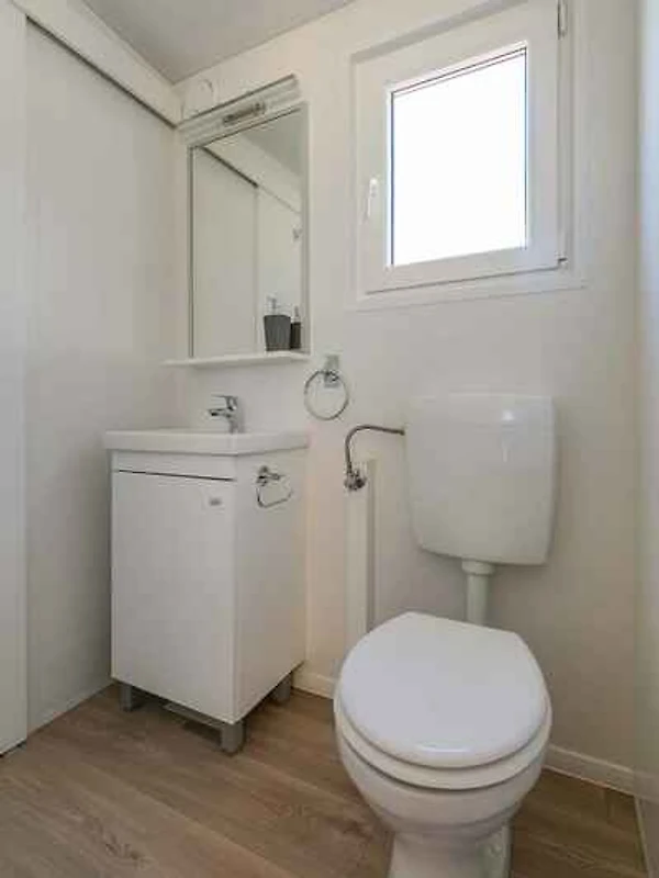 Mobilehome, 1 Etage, 3 Zimmer (davon 2 Schlafzimmer), 33 qm, insgesamt 6 Betten (davon 2 Zusatzbetten).