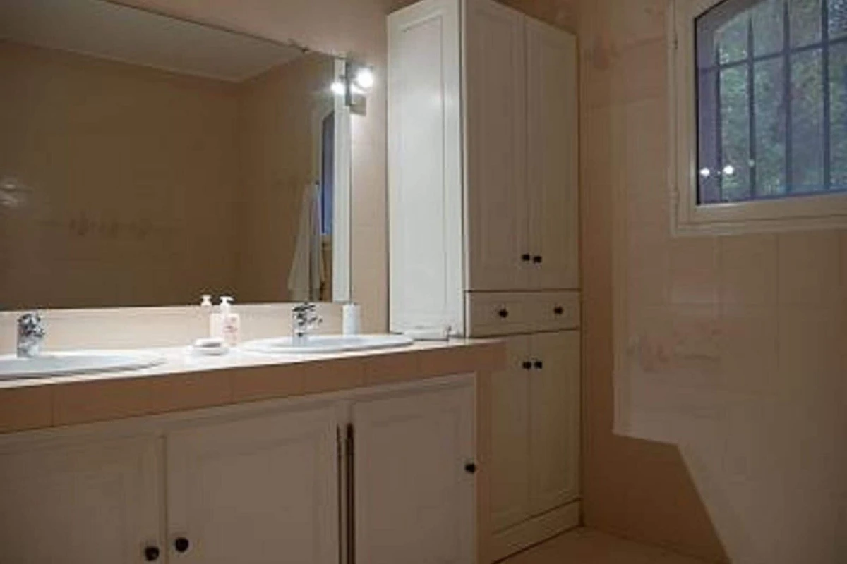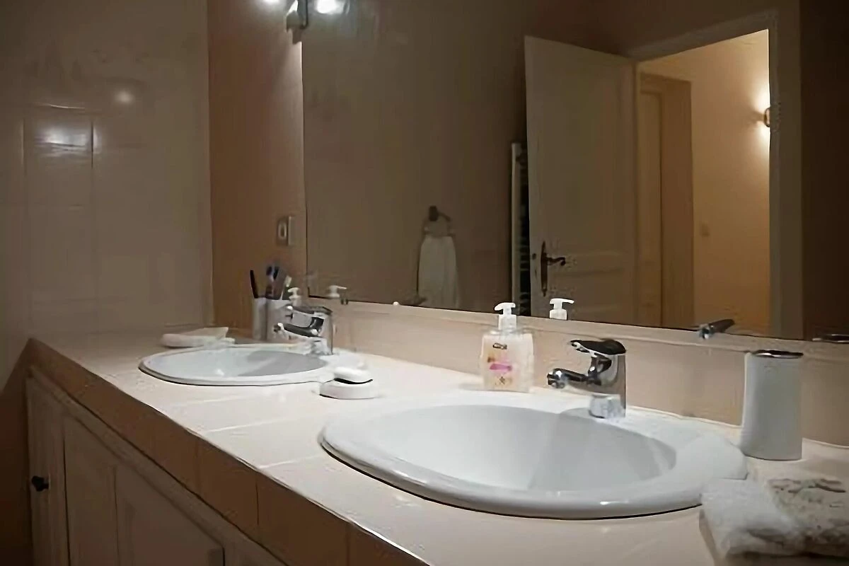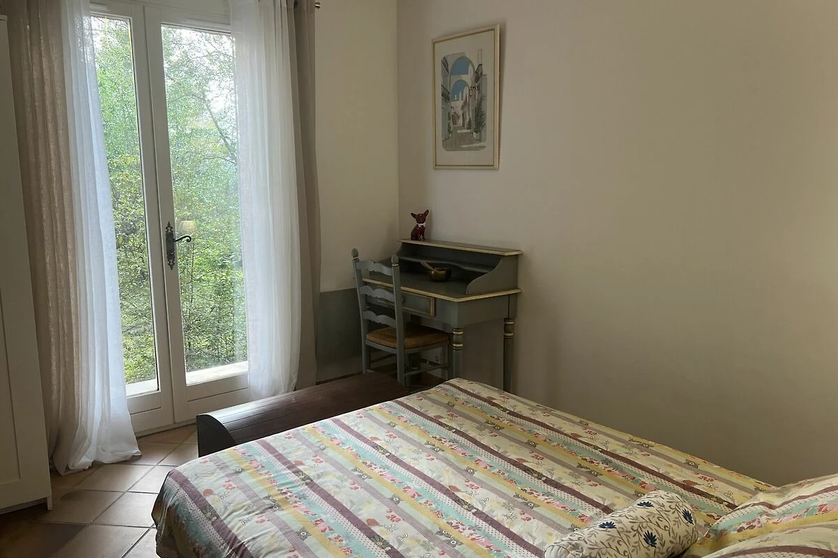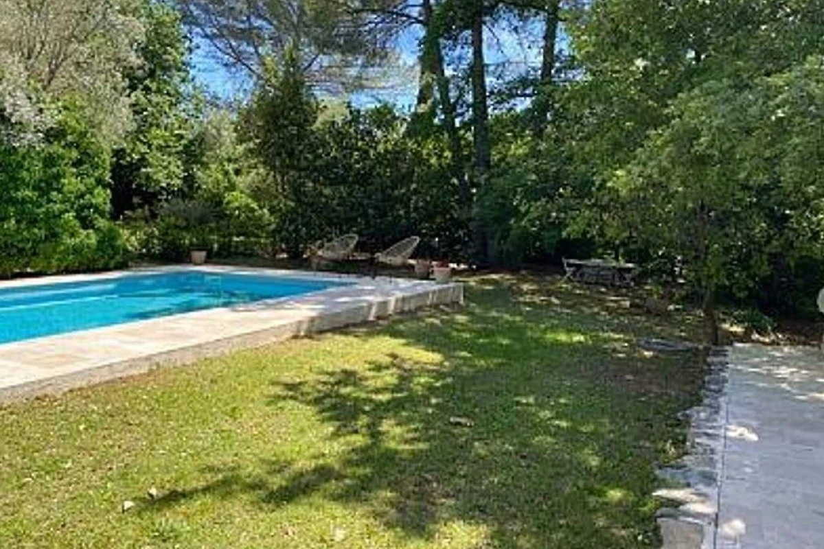 Im Außenbereich laden mehrere Terrassen mit Gartenmöbeln zum Entspannen und Genießen der ruhigen Umgebung ein. Das Highlight ist der große Pool, umgeben von Liegestühlen, die zum Entspannen und Sonnenbaden einladen. Egal, ob Sie am Pool entspannen, auf der Terrasse speisen oder den üppigen Garten genießen, dieses Haus ist so konzipiert, dass es Ihnen einen komfortablen und ruhigen Aufenthalt im Herzen der Provence bietet.