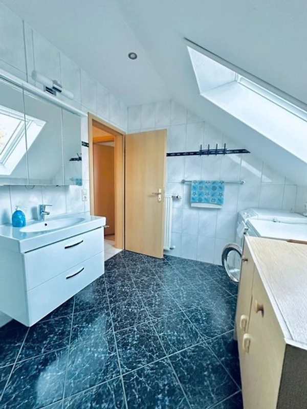 Ebenso ein Bad mit Dusche, WC, Waschmaschine und Trockner.