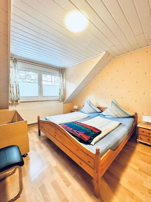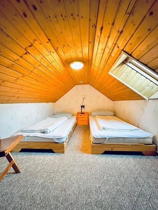 Optional kann noch ein Schlafraum mit zwei Betten auf dem ausgebauten Dachboden genutzt werden.
