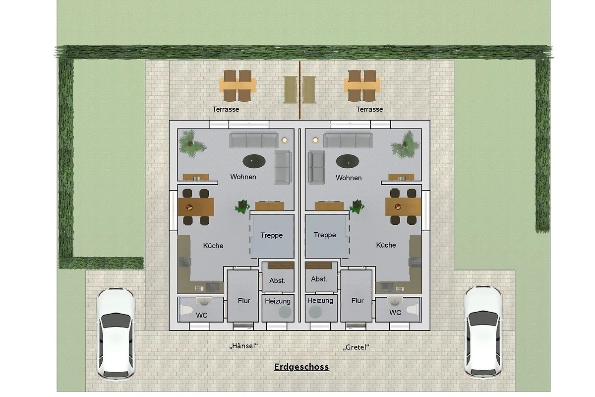 Ein Gäste-WC und ein Abstellraum liegen ebenfalls im Erdgeschoss .
