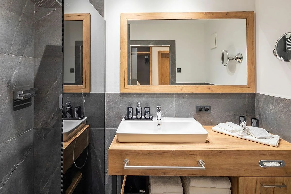 Mit effizient gestalteten Schlafzimmern mit zum Teil bodentiefen Fenstern und Boxspringbetten, modern gestalteten Bädern mit Regendusche, offen gehaltenem Flur, Wohn- und Essbereichen lässt es sich wunderbar entspannen und dem Alltag entfliehen. Unser dezentrales Lüftungssystem realisiert den geforderten Luftwechsel und sorgt für einen behaglichen und gesunden Luftumtausch in allen Appartements. Alle Appartements sind mit WLAN und TV-Flatscreen in allen Wohn- und Schlafzimmern ausgestattet und über einen Personenaufzug von der Tiefgarage bis zum Dachgeschoss erreichbar.