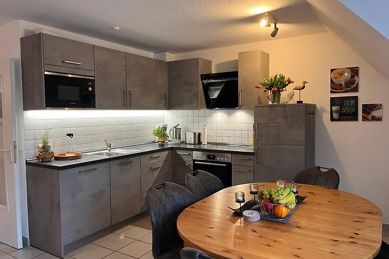 Moderne Ferienwohnung für 6 Personen. Strandnah gelegen im Darsser Weg. Exzellente und ruhige Lage. Strand, Promenade, Fussgängerzone, Geschäfte und Restaurants sind in wenigen Minuten zu Fuss erreichbar. In der Wohnung befindet sich eine neue Küche mit moderner Ausstattung. Die Wohnung erstreckt sich über zwei Geschosse (Obergeschoss und Dachgeschoss) und verfügt über ein Doppelzimmer und ein Vierbettzimmer. Auf der gemütlichen Empore kann auf dem Schlafsofa eine weitere Person übernachten. Für Ihre Fahrräder gibt es einen abschliessbaren Schuppen auf dem Grundstück. Zu jeder Wohnung gehört ein kostenloser PKW-Stellplatz. Die Kosten für die ENDREINIGUNG 115,00 EUR sind BAR vor Ort zu zahlen. Bitte beachten Sie, dass Ihr Aufenthalt in Zingst kurabgabepflichtig ist. Wir stellen den individuellen Betrag nach Übermittlung Ihrer Daten an uns in Rechnung. Dazu bekommen Sie eine separate Mail nach Ihrer Buchung vom Vermieter selbst.Möchten Sie Ihren Hund mitnehmen, ist das gerne möglich! Bitte fragen Sie vorher an und wir informieren Sie über die zusätzliche Kosten für Miete und Endreinigung.