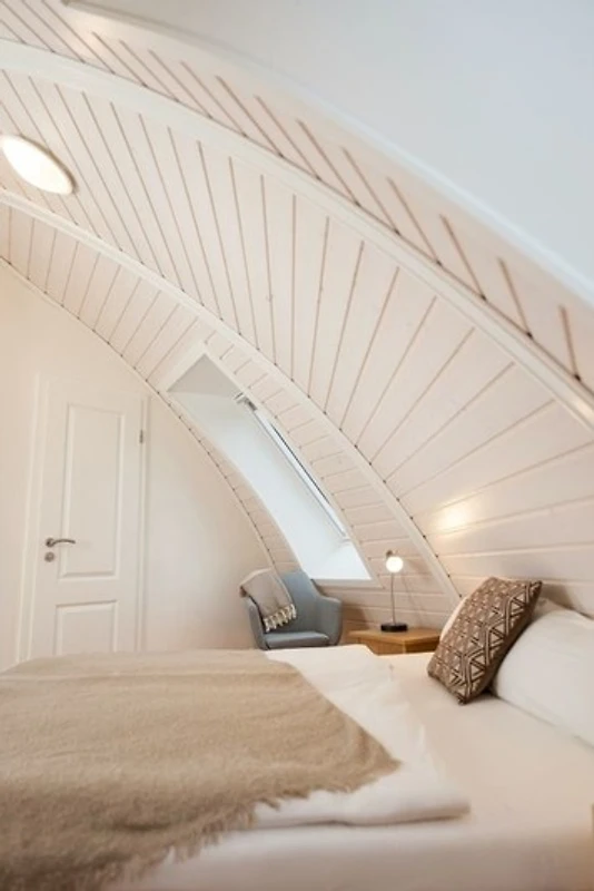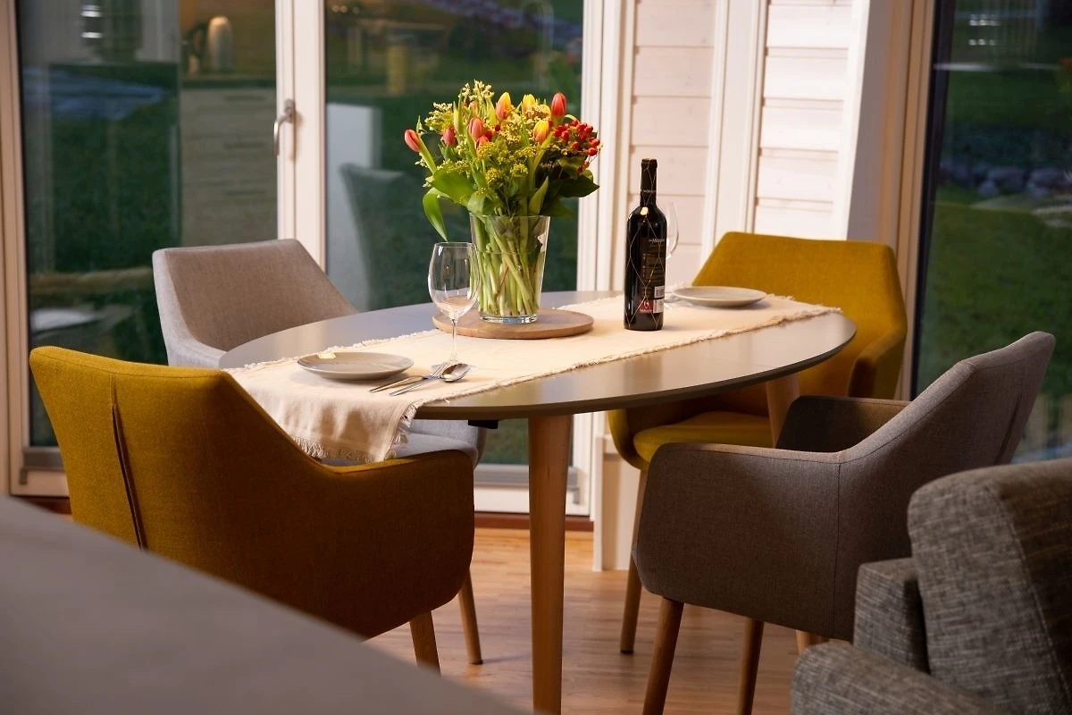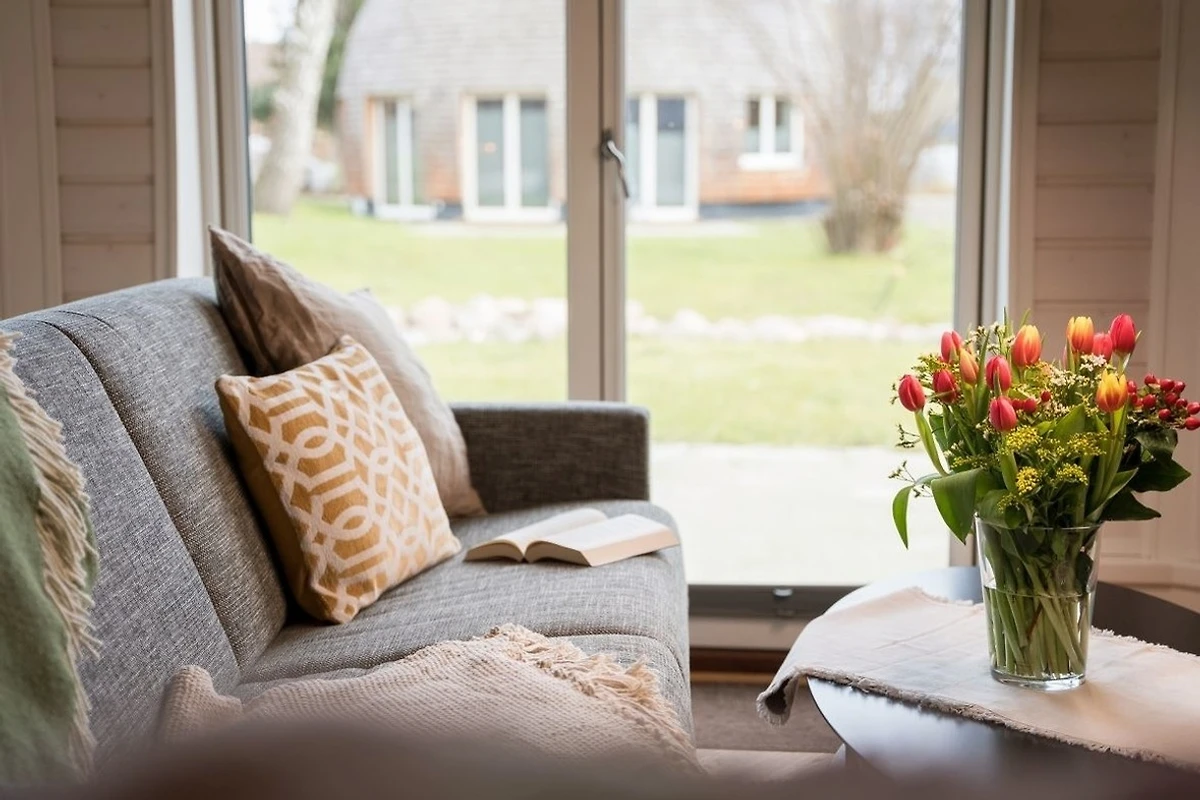 Der Wohnbereich ist durch die Lichtkuppel und die bodentiefen Fenster lichtdurchflutet. Haus Phoebe ist ca. 85 m² gross und bietet Platz für 4 Personen ( + 1 Kleinkind). Ein Kinderreisebett ist vorhanden.