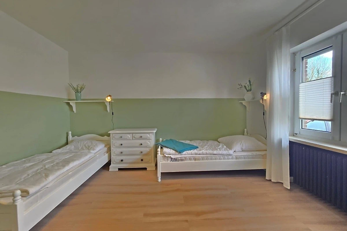 Die Ferienwohnung befindet sich in einem ruhigen Wohngebiet in Norden, einem charmanten Ort an der Nordseeküste. In unmittelbarer Nähe sind zahlreiche Freizeitmöglichkeiten zu finden. Der Strand und die Badeanlagen sind nur etwa 5 Kilometer entfernt, ideal für entspannte Tage am Wasser. Angler und Wassersportbegeisterte erreichen die Möglichkeiten zum Windsurfen und Kanufahren in circa 6 km Entfernung. Golf- und Reitanlagen befinden sich ebenfalls in der Nähe, während Rad- und Wanderwege dazu einladen, die umliegende Natur zu erkunden. Für Familien sind Spielplätze und Minigolfanlagen in der Umgebung vorhanden. Kulturinteressierte können Museen und Angebote für Kosmetikbehandlungen im Stadtzentrum, etwa 3 Kilometer entfernt, entdecken. Die Anreise erfolgt bequem über die gut ausgebauten Strassen, die eine entspannte Ankunft garantieren.