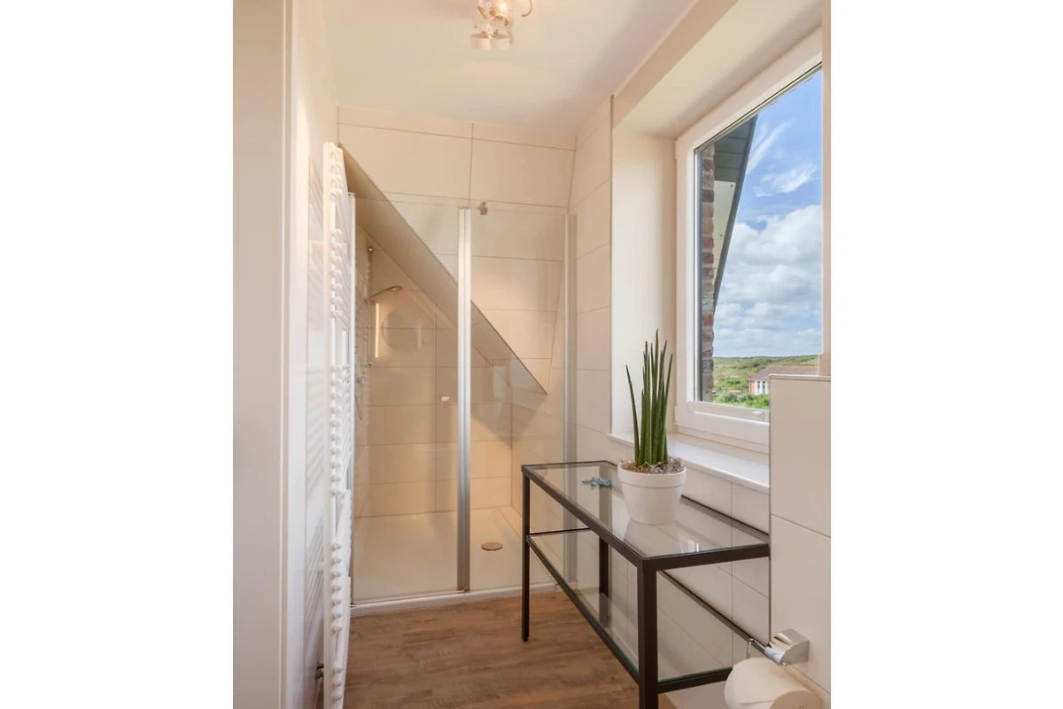 Das Dünnehuus West bietet 5 Schlafzimmer, 4 Bäder und 1 Gäste WC, große Wohnküche mit Kamin und Balkon, Garten, Grillplatz, 4 Leihfahrräder, Waschmaschine, Trockner, WLAN. Nur wenige Minuten zum Ortszentrum und zum Strand.