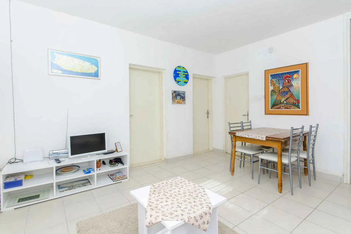 Der Eingang in Ihr Ferienhaus befindet sich im Erdgeschoss, ist ebenerdig und führt direkt in die Wohnküche. Wohnzimmer mit Sitzecke, Klimaanlage und Essecke (4 Plätze). Schlafzimmer (12 qm) mit 2 Einzelbetten. Schlafzimmer (15 qm) mit 1 Doppelbett. Kochnische im Wohnzimmer mit Elektroherd (Cerankochfeld, 4 Platten), Backofen, Kühlschrank (Eisfach), Mikrowelle, Kaffeemaschine, Toaster und elektrischem Wasserkocher. Bad mit Dusche, 1 Waschbecken, WC, Föhn und Fenster.
