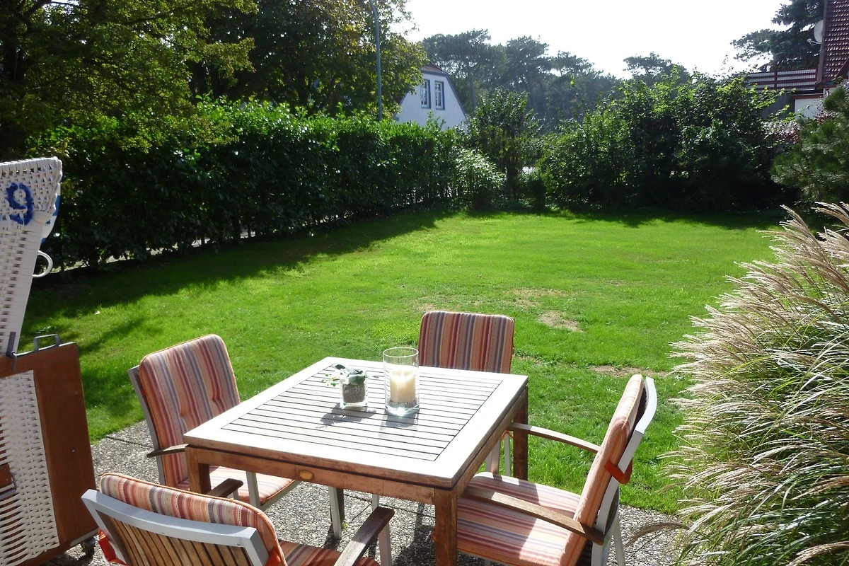 Die Terrasse ist nach Südwesten ausgerichtet, so können Sie den ganzen Tag lang die Sonne geniessen. Ein Strandkorb bietet auch bei stürmischem Wetter Schutz. Selbstverständlich stehen Ihnen auch Gartenmöbel sowie Auflagen zur Verfügung. Unsere grosse Liegewiese im Garten lädt zum Sonnen und zum Ballspielen für die Kleinen ein.