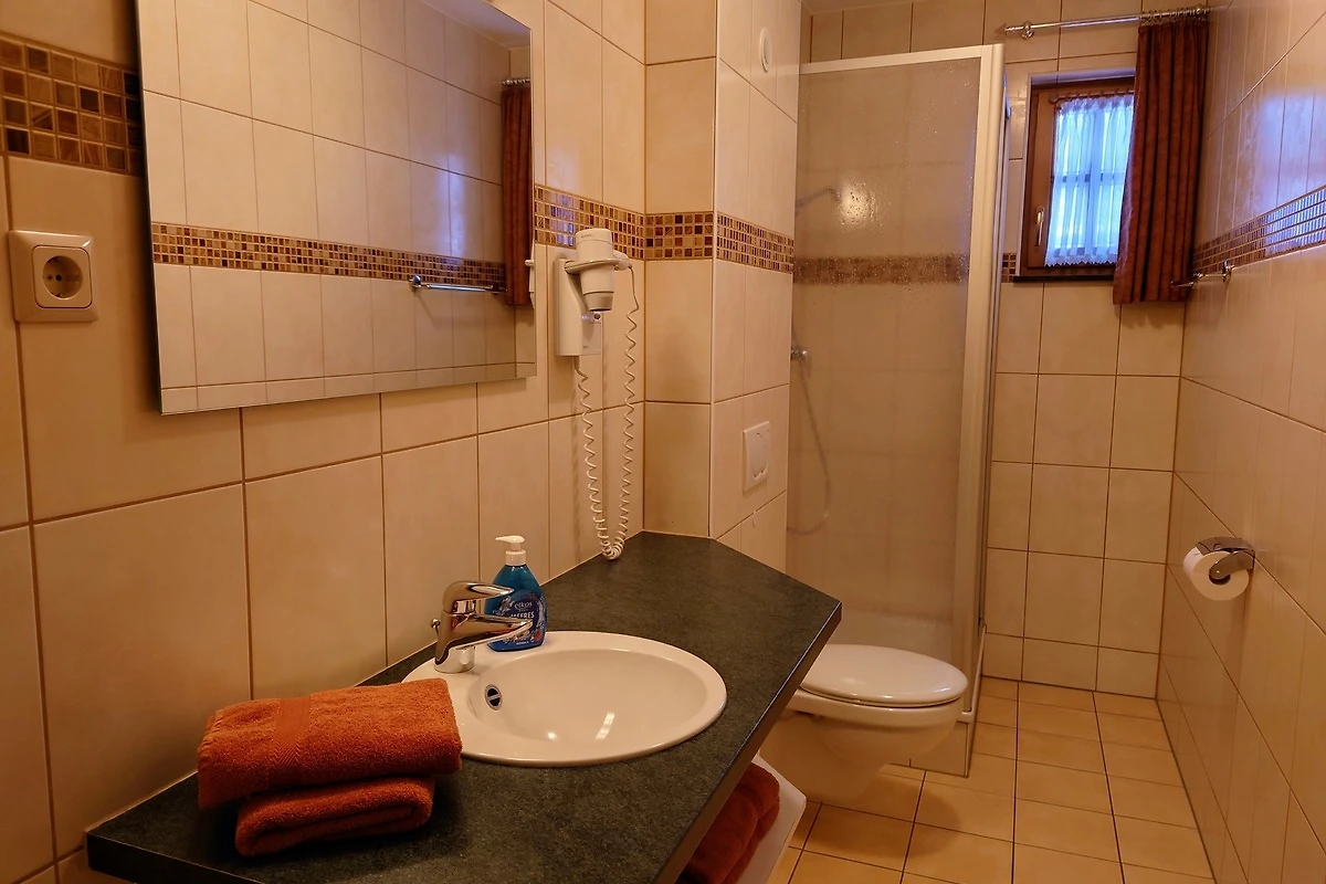 Ein Wellnessbereich mit Ruheraum, Erlebnisdusche, Fusswärmebecken, Sauna und Dampfbad steht allen Gästen in der Zeit von 16:00 Uhr bis 18:30 Uhr kostenlos zur Verfügung. Der Fitnessraum ist ständig zugänglich. Kostenfreie Parkmöglichkeiten befinden sich direkt vor dem Haus. Hier können sie auch ihr Elektroauto nachhaltig mit einer Wallbox aufladen. Eine Gaststätte ist ca. 100 Meter entfernt wo sie auch vorab Frühstück, Abendessen oder Halbpension (3-Gänge- Wahlmenü) buchen können