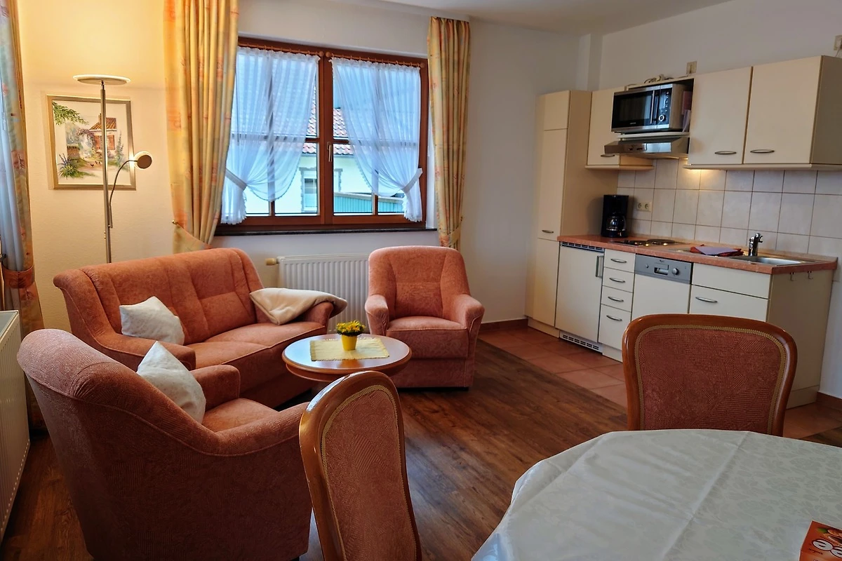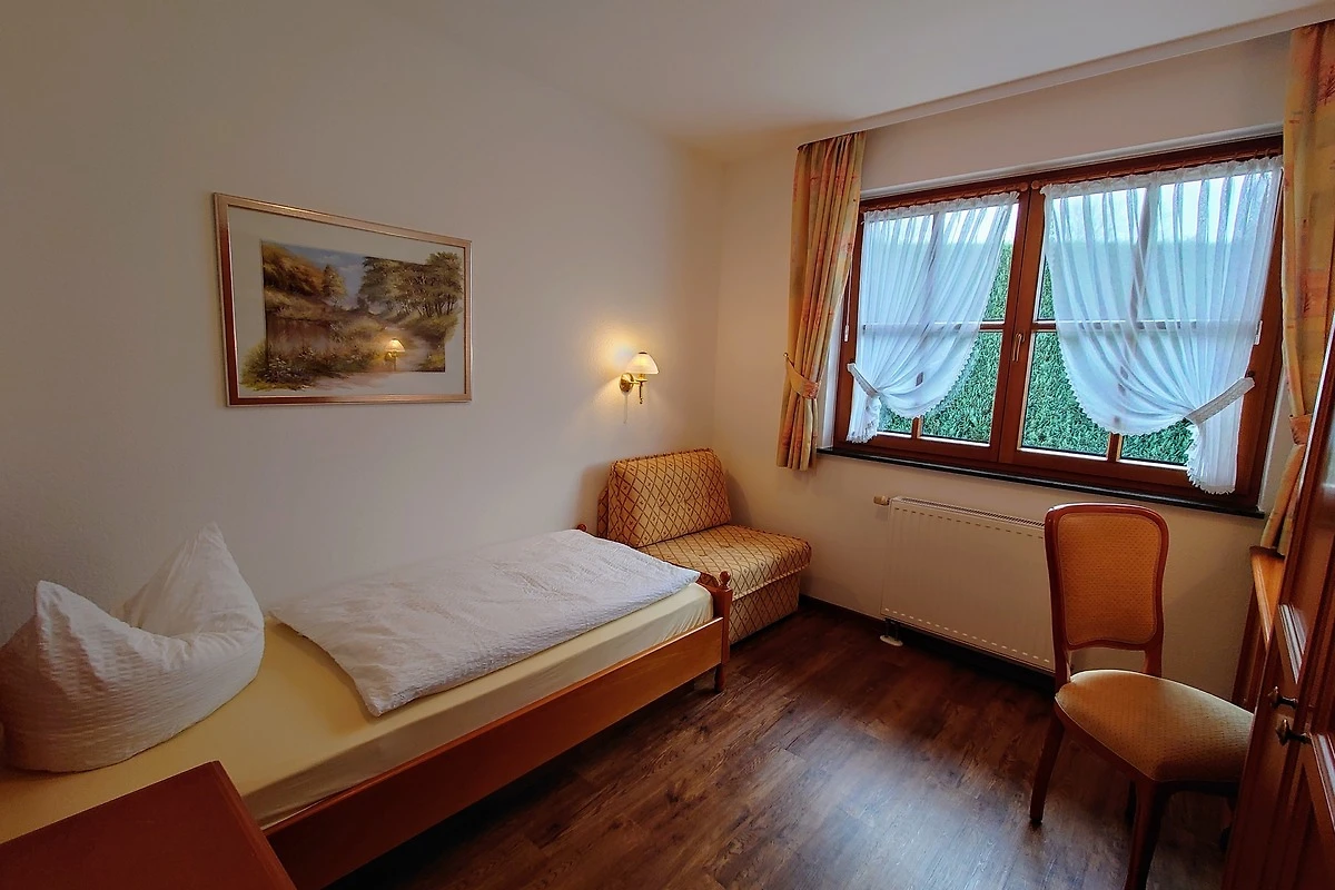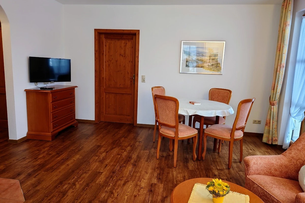 Ein Wellnessbereich mit Ruheraum, Erlebnisdusche, Fusswärmebecken, Sauna und Dampfbad steht allen Gästen in der Zeit von 16:00 Uhr bis 18:30 Uhr kostenlos zur Verfügung. Der Fitnessraum ist ständig zugänglich. Kostenfreie Parkmöglichkeiten befinden sich direkt vor dem Haus. Hier können sie auch ihr Elektroauto nachhaltig mit einer Wallbox aufladen. Eine Gaststätte ist ca. 100 Meter entfernt wo sie auch vorab Frühstück, Abendessen oder Halbpension (3-Gänge- Wahlmenü) buchen können