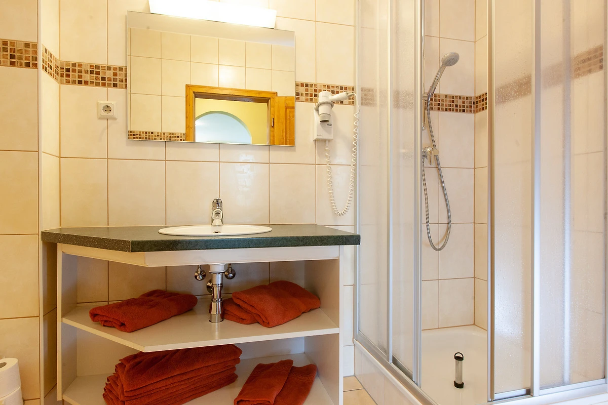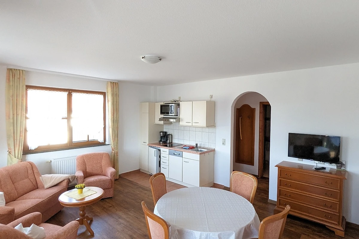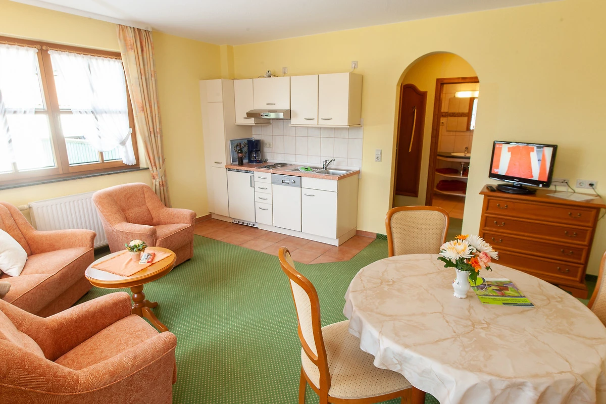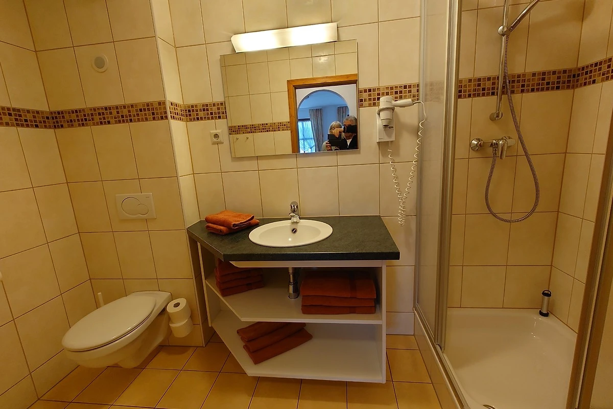 Ein Wellnessbereich mit Ruheraum, Erlebnisdusche, Fusswärmebecken, Sauna und Dampfbad steht allen Gästen in der Zeit von 16:00 Uhr bis 18:30 Uhr kostenlos zur Verfügung. Der Fitnessraum ist ständig zugänglich. Kostenfreie Parkmöglichkeiten befinden sich direkt vor dem Haus. Hier können sie auch ihr Elektroauto nachhaltig mit einer Wallbox aufladen. Eine Gaststätte ist ca. 100 Meter entfernt wo sie auch vorab Frühstück, Abendessen oder Halbpension (3-Gänge- Wahlmenü) buchen können
