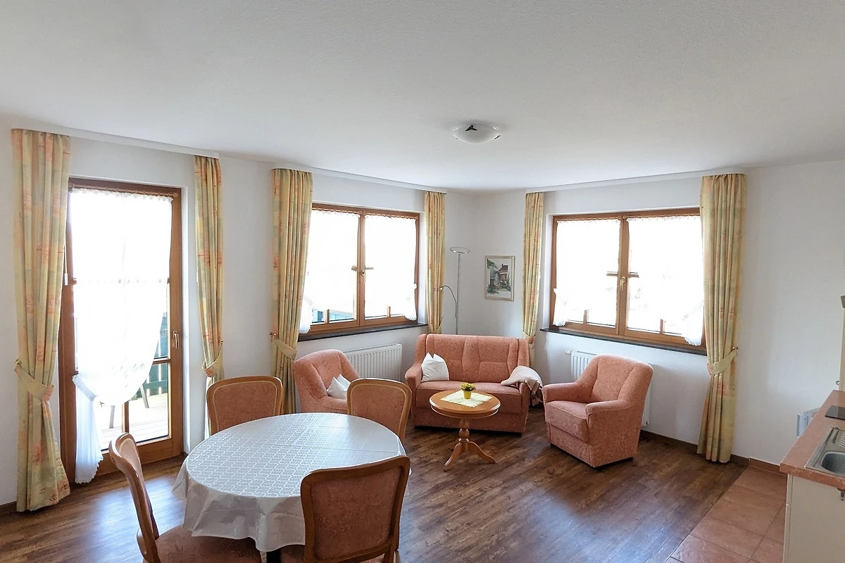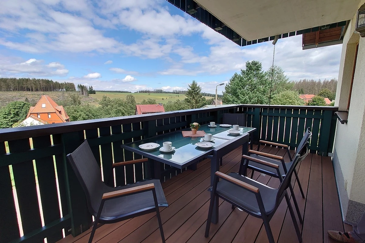 Der Balkon zeigt nach Norden und lässt einen Blick mit herrlicher Aussicht ins Tal zu. Sitzmöbel sind vorhanden.