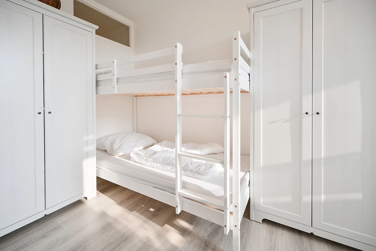 Zusätzlich bietet ein separates Schlafzimmer mit Etagenbett und Kleiderschrank genügend Platz für Ihre Familie.