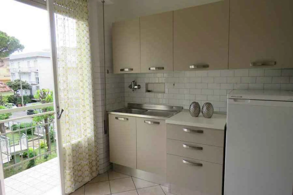 Riccione. Die Wohnung ist funktional und einfach eingerichtet, bietet viel Platz und ist mit einem TV, Backofen und Balkon ausgestattet. Es ist für ein junges Publikum geeignet. Es befindet sich in einer ruhigen Gegend und in der Nähe von Bars, Restaurants und Geschäften. Der Strand von Riccione ist etwa 700 m entfernt.