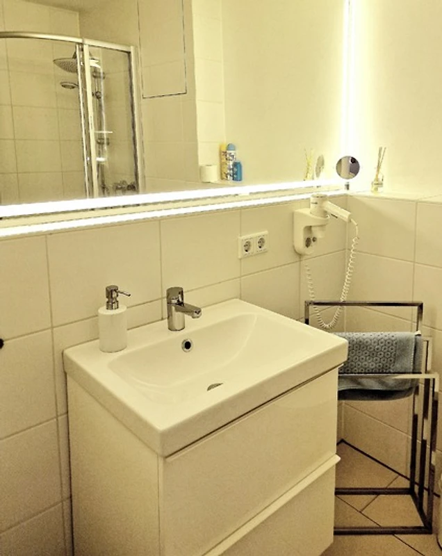 Im Duschbad steht Ihnen ausserdem eine Waschmaschine sowie ein Trockner zur Verfügung. Grosszügige Schränke im Schlafzimmer und im Flur bieten ausreichend Platz für Ihre Urlaubsgarderobe. Optional können Bettwäsche und Handtücher für € 25 pro Person dazu gebucht werden – Strandtücher bitten wir Sie, selbst mitzubringen.