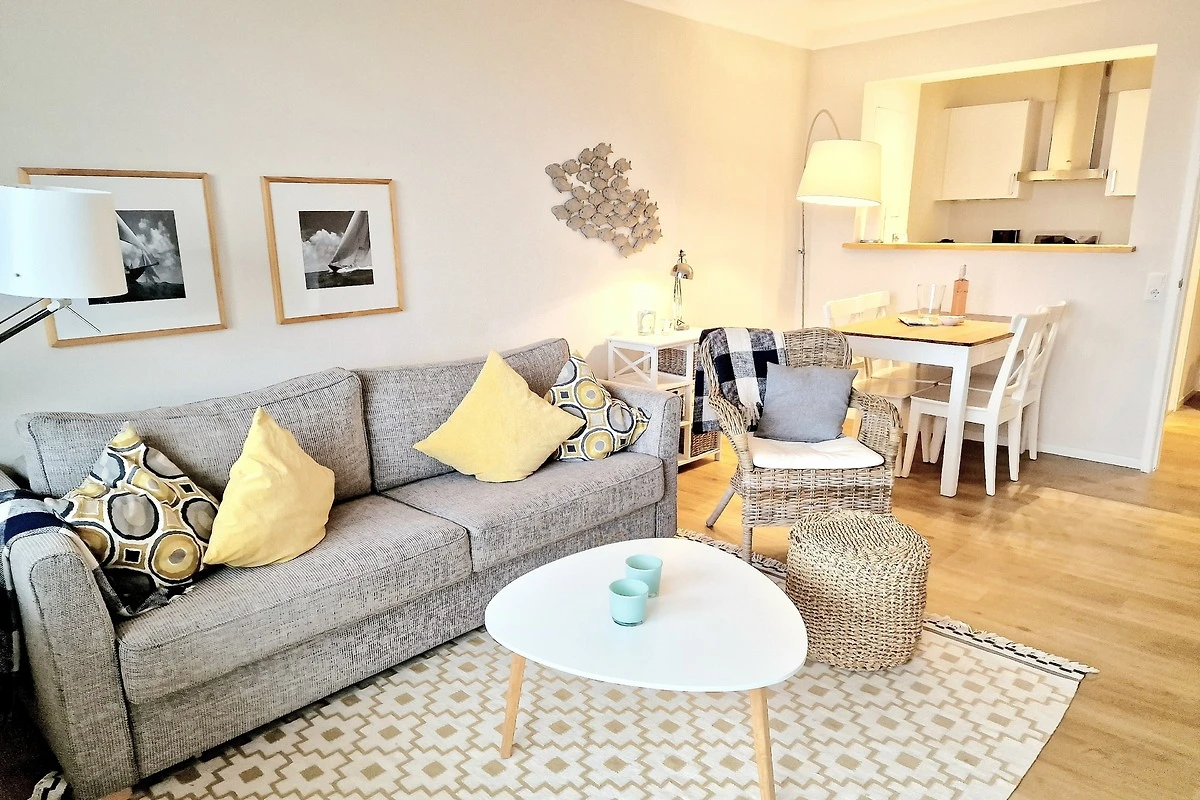 Freuen Sie sich auf eine lichtdurchflutete und modern gestaltete Wohnumgebung. Im Wohnzimmer erwartet Sie neben einer gemütlichen Essecke, einem Flachbildfernseher und einer Musikanlage auch ein Sofa, das sich zu einem zusätzlichen Bett für 2 Personen umfunktionieren lässt.