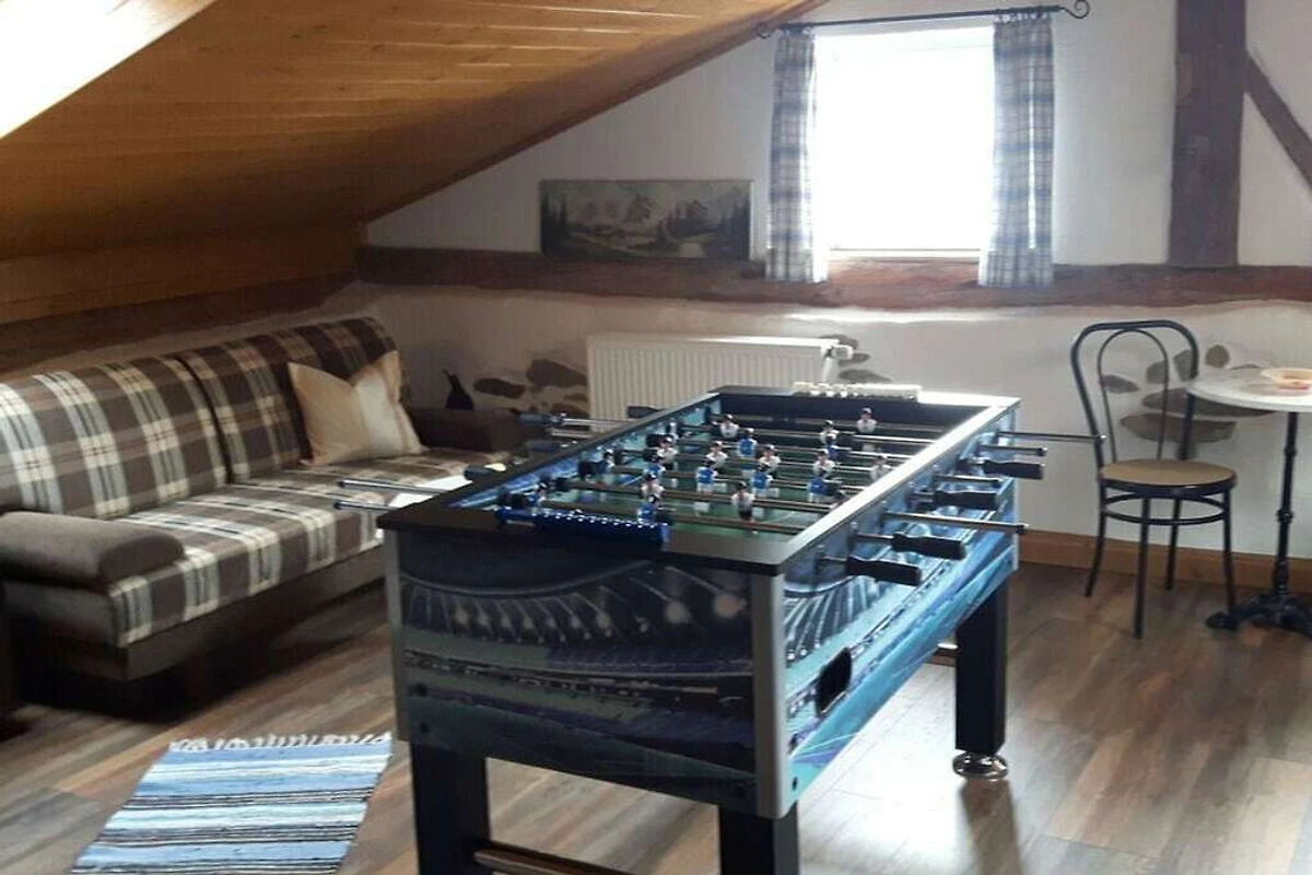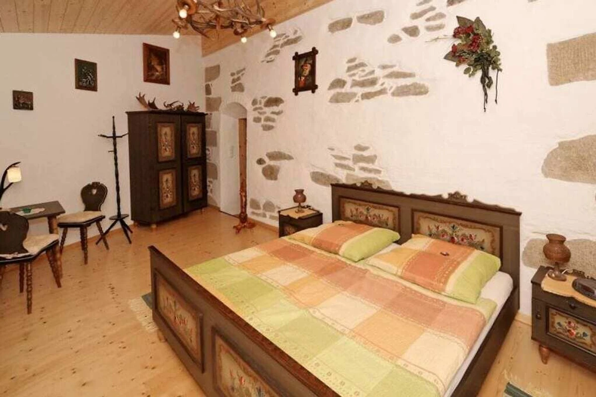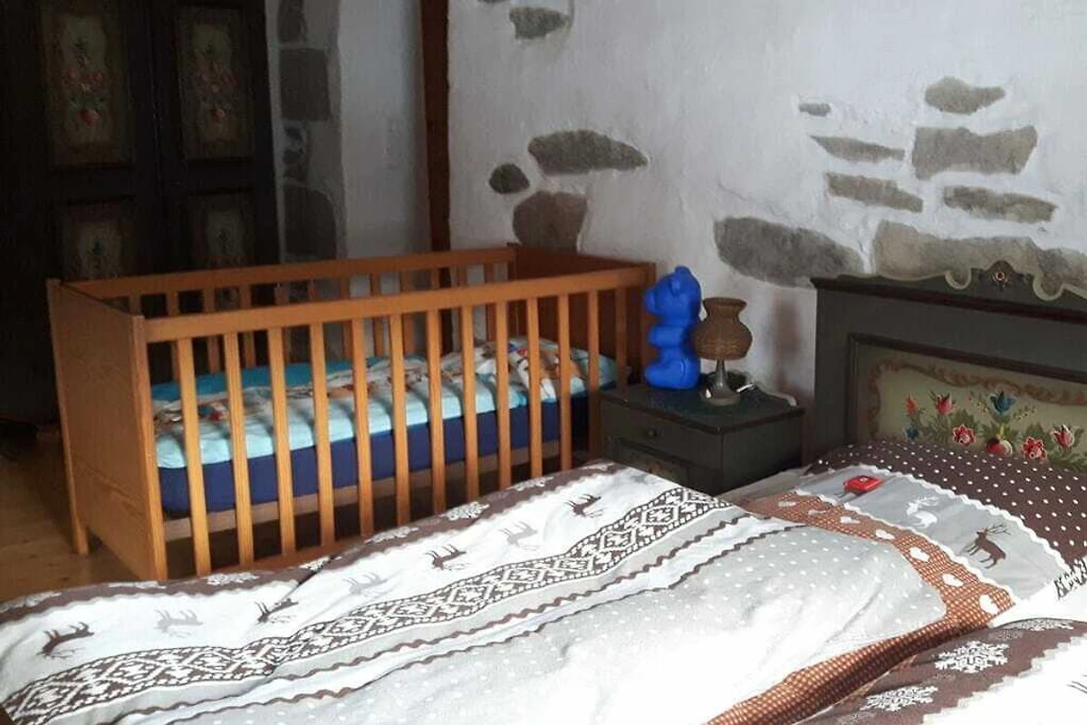 Das Ferienhaus befindet sich auf 750m üN. Es hat 140 m² Wohnfläche mit 4 Schlafzimmern, einem Bad/WC mit Badewanne und ein sep.WC. Die Küche ist komplett ausgestattet incl. GS, Mikrowelle, E-Herd und wird mit einer Grundausstattung übergeben. Im Speicherzimmer und im Aufenthaltsraum befinden sich je ein Flachbildfernseher mit SAT und DVD. Die Zimmer sind hell und freundlich, zum Teil mit Massivholzmöbeln ausgestattet.